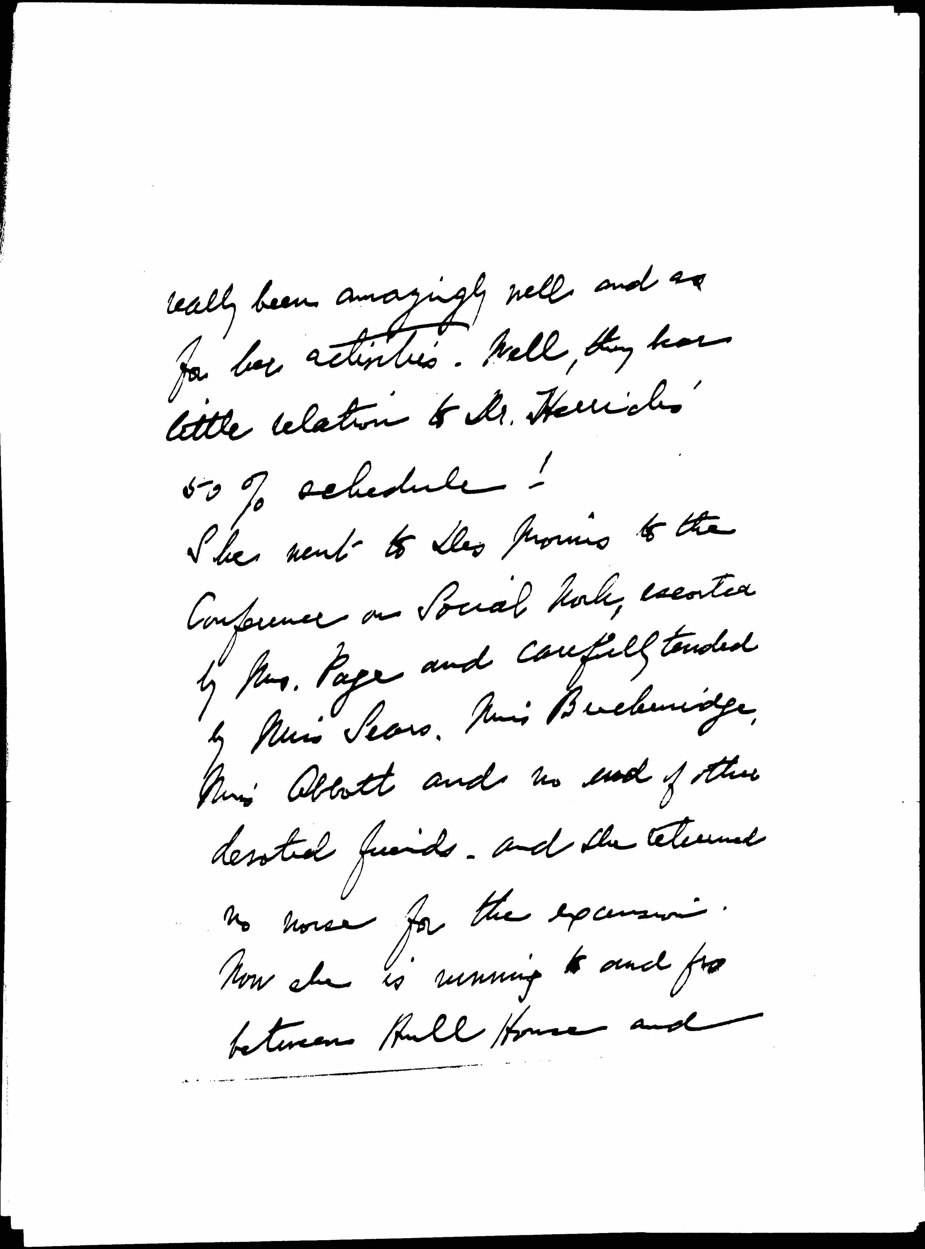 She went to Des Moines to the Conference on Social Work, escorted by Mrs. Page and carefully tended by Miss Sears, Miss Breckinridge, Miss Abbott and no end of other devoted friends, and she returned no worse for the excursion.