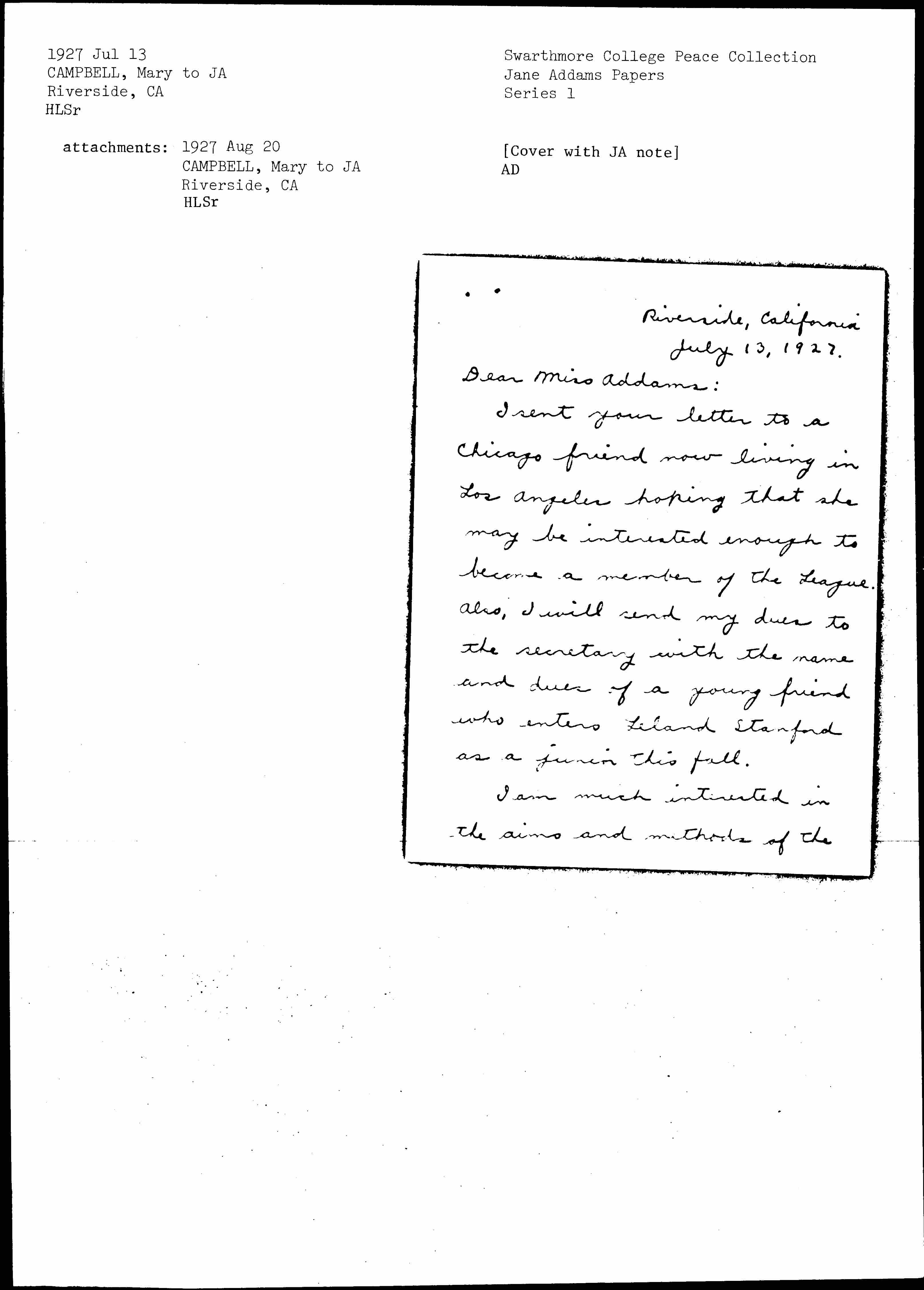 I sent your letter to a Chicago friend now living in Los Angeles hoping that she may be interested enough to become a member of the League.