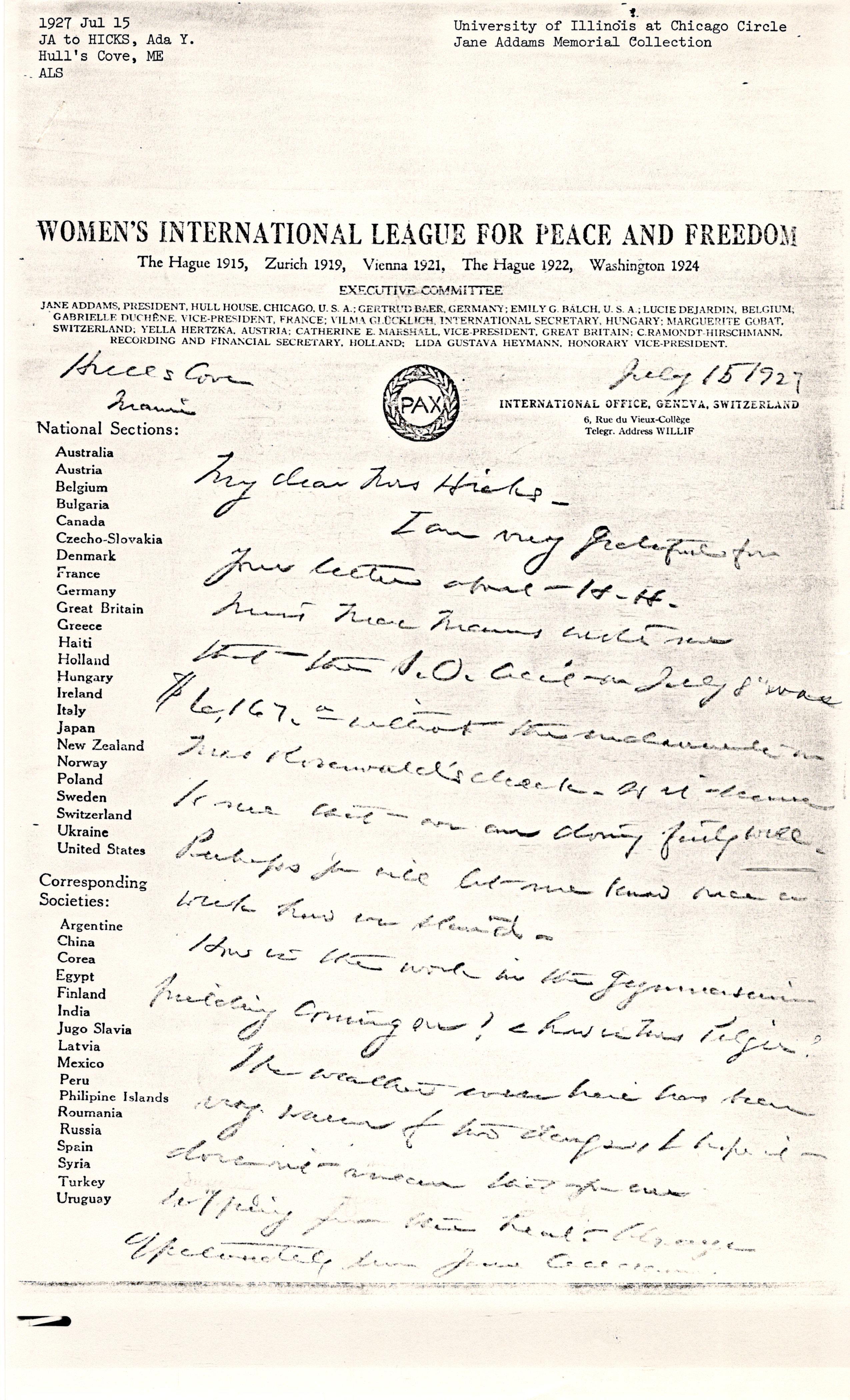 The weather over here has been very warm for two days, I hope it doesn't mean that you are suffering from the heat. Always affectionately yours Jane Addams.
