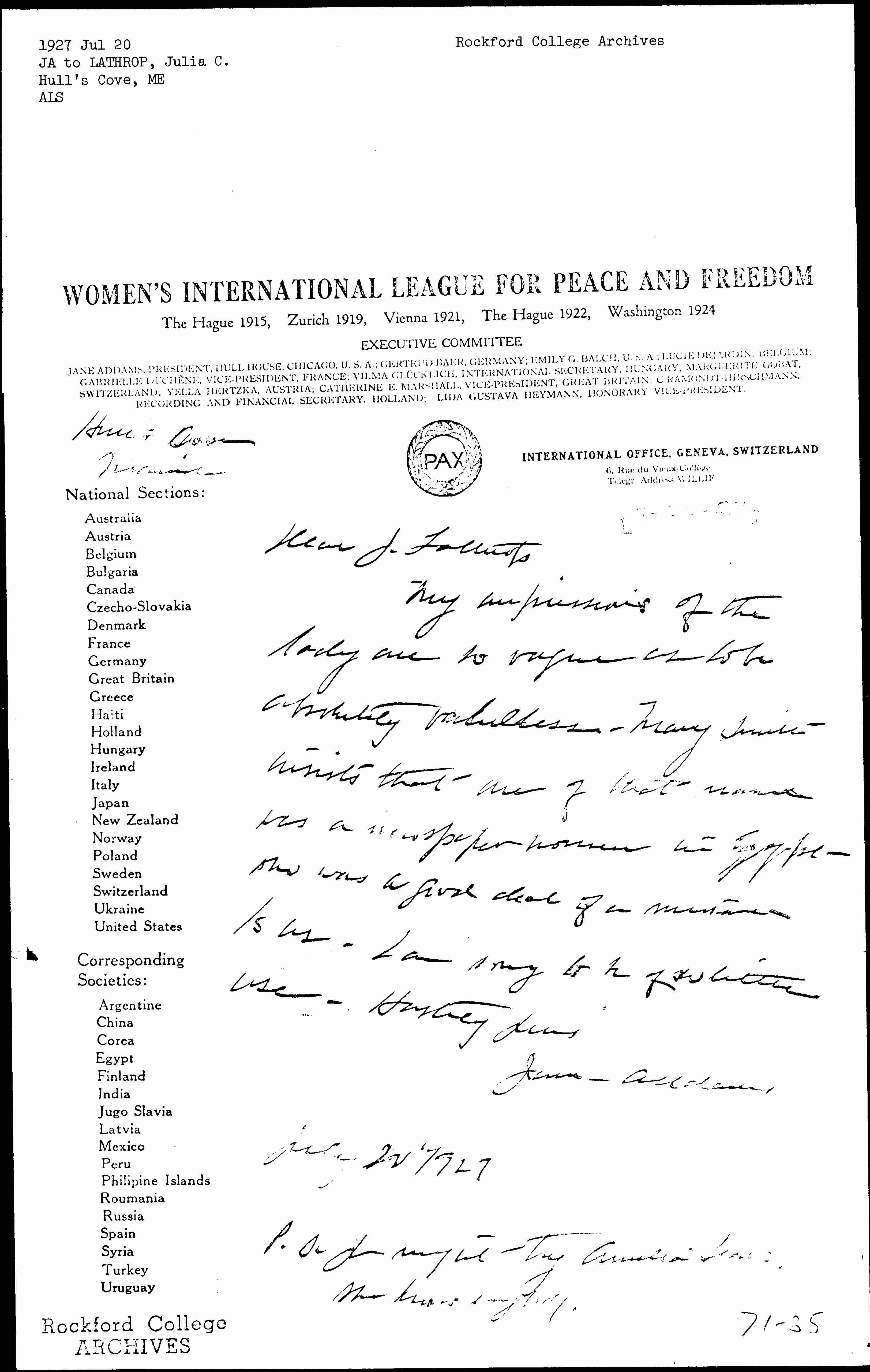 WOMEN'S INTERNATIONAL LEAGUE FOR PEACE AND FREEDOM