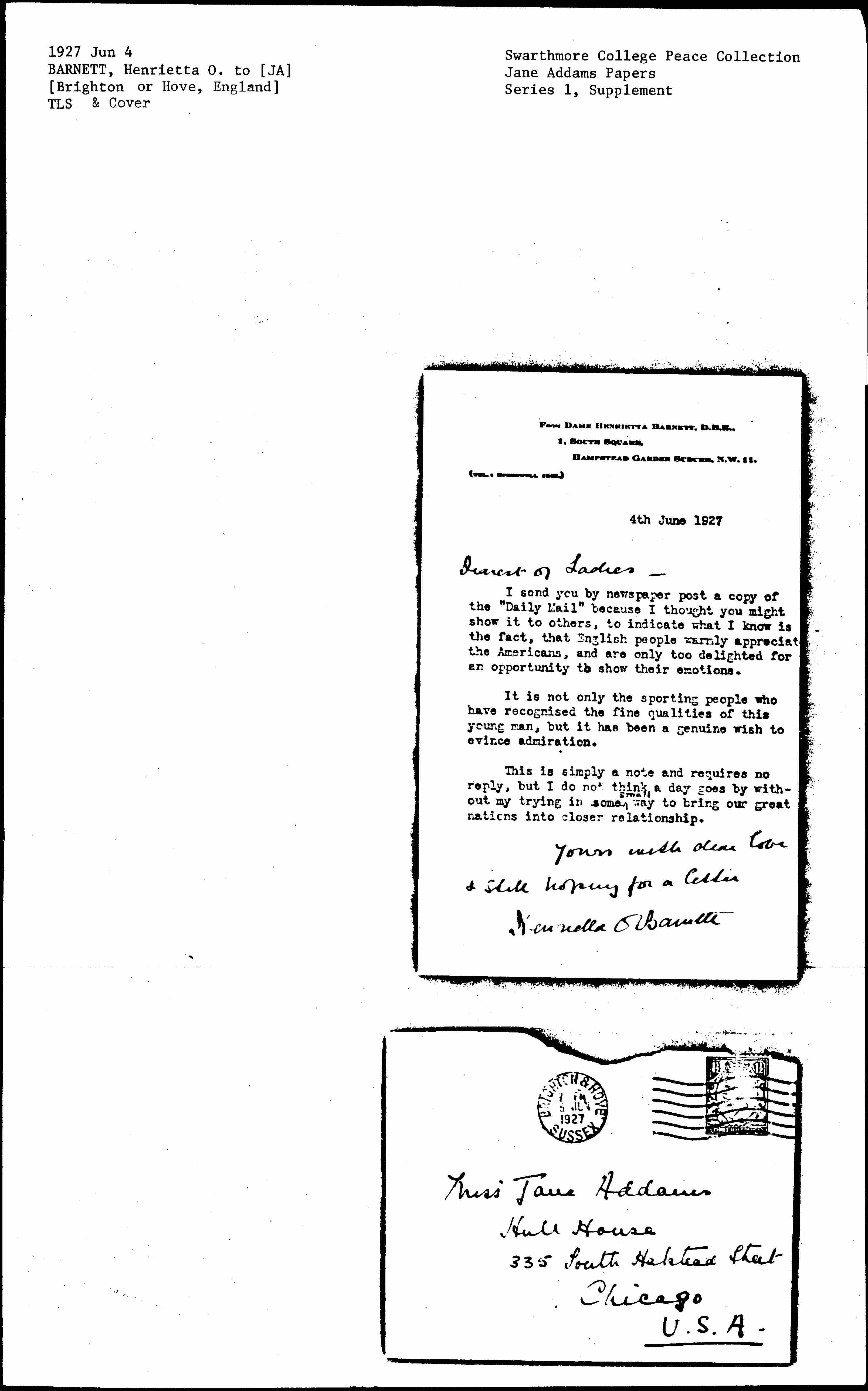 From DAME HENRIETTA BARNETT, D.B.E.,