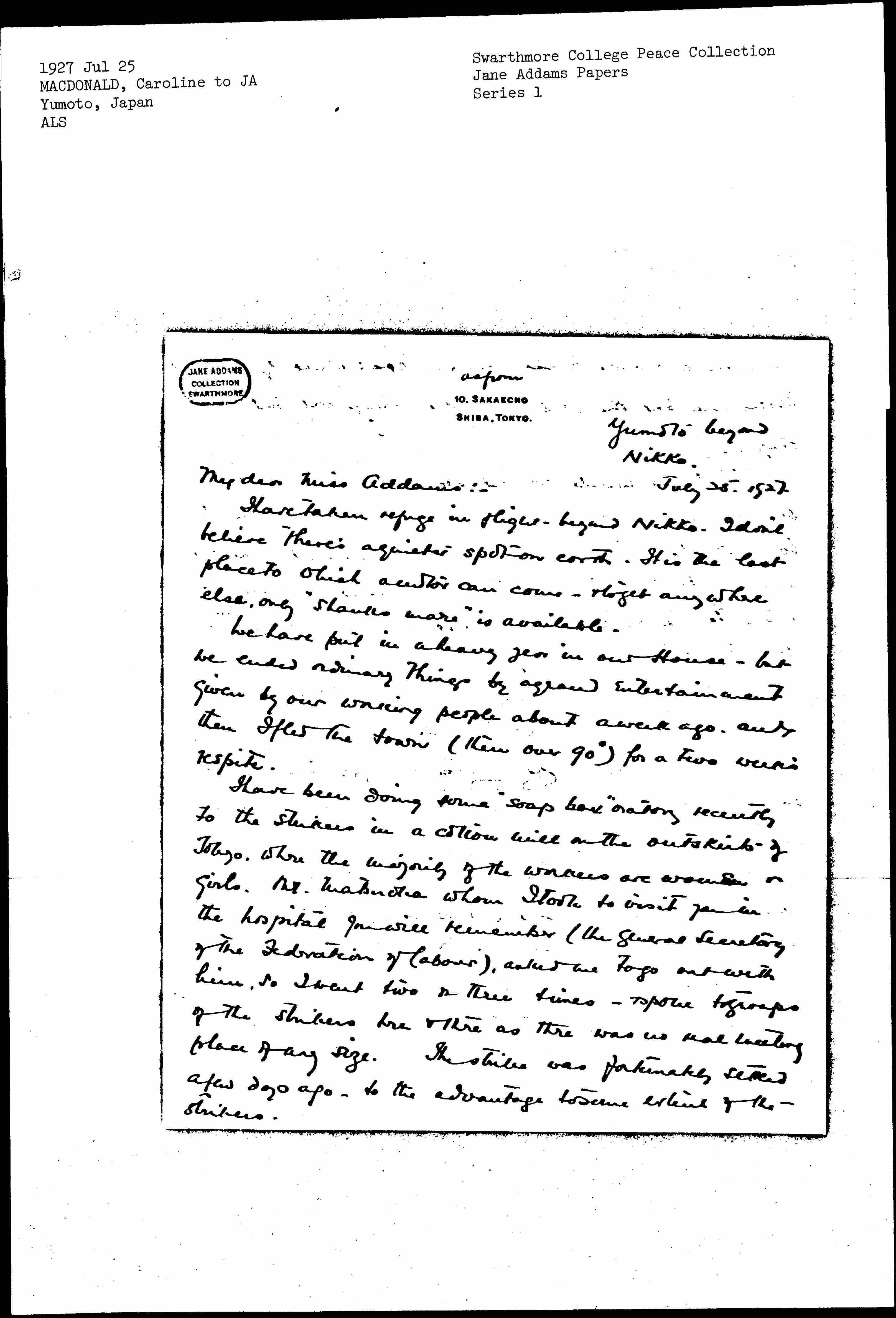 By the way, Mr. Matsuoka visited Hull House last summer on his way back from Geneva where he was one of the [labor] representatives at the Labour Conference -- I forget whether he said he met you or not.