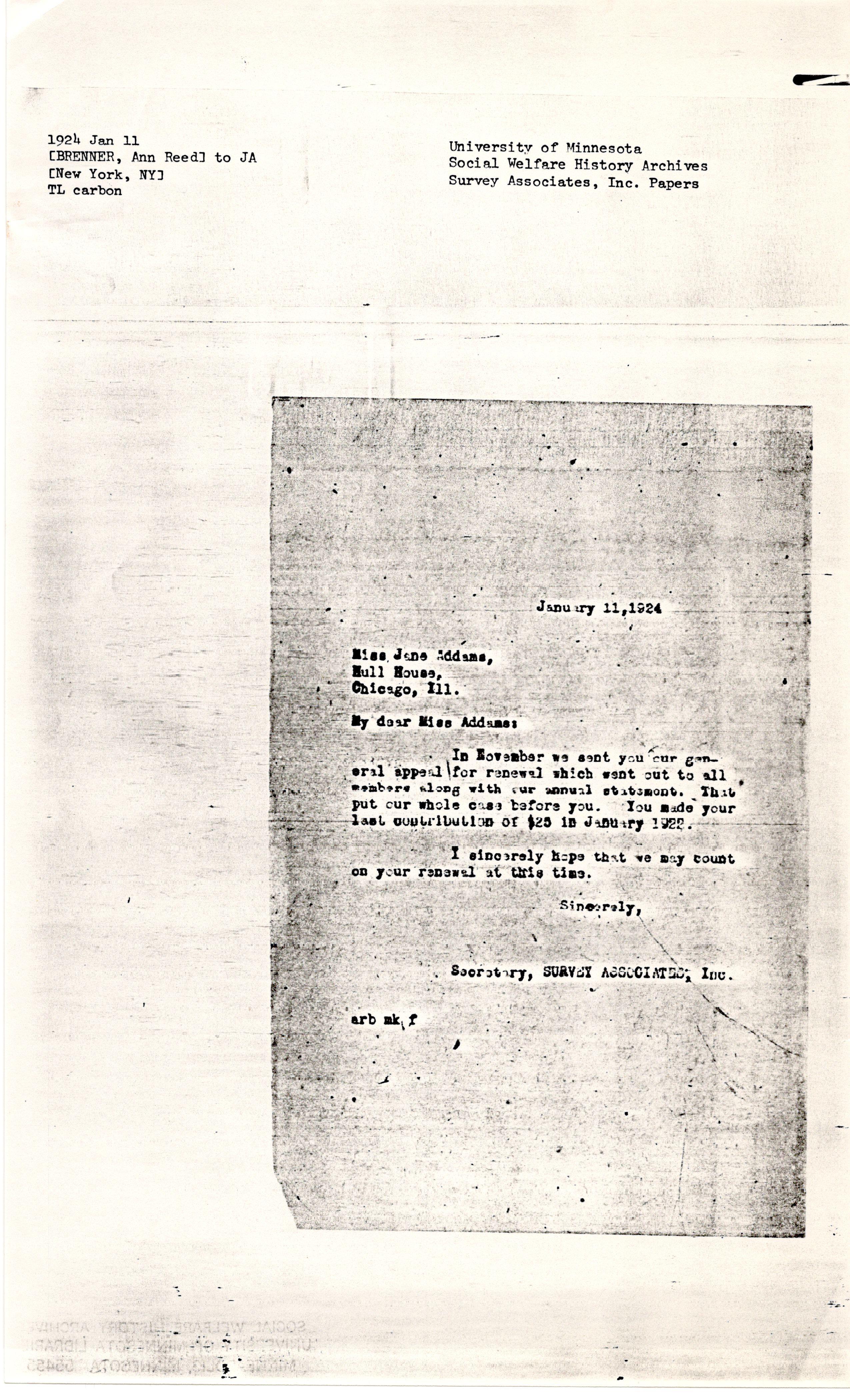 In November we sent you our general appeal for renewal which went out to all members along with our annual statement. That put our whole case before you. You made your last contribution of $25 in January 1922.