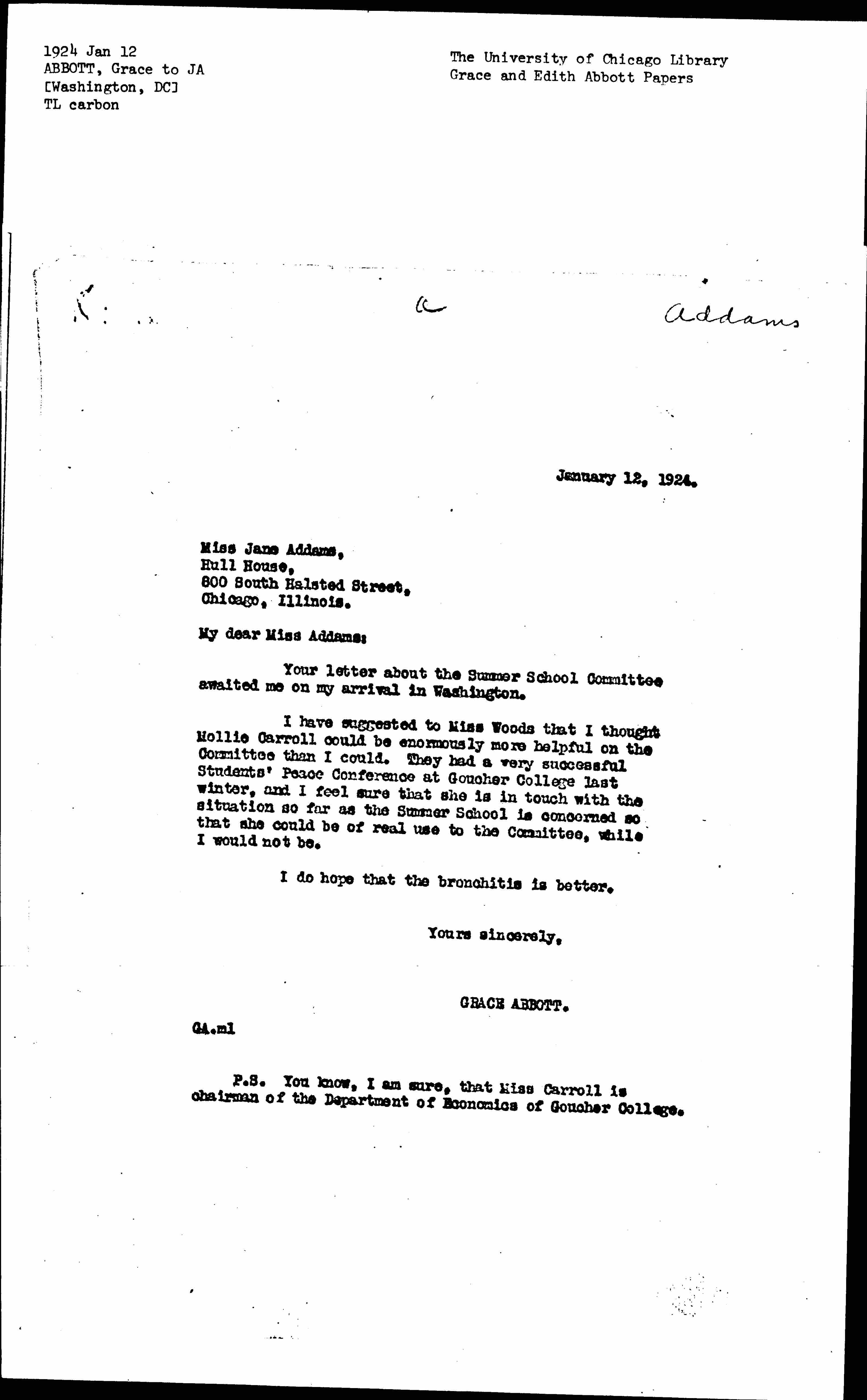 P.S. You know, I am sure, that Miss Carroll is chairman of the Department of Economics of Goucher College.