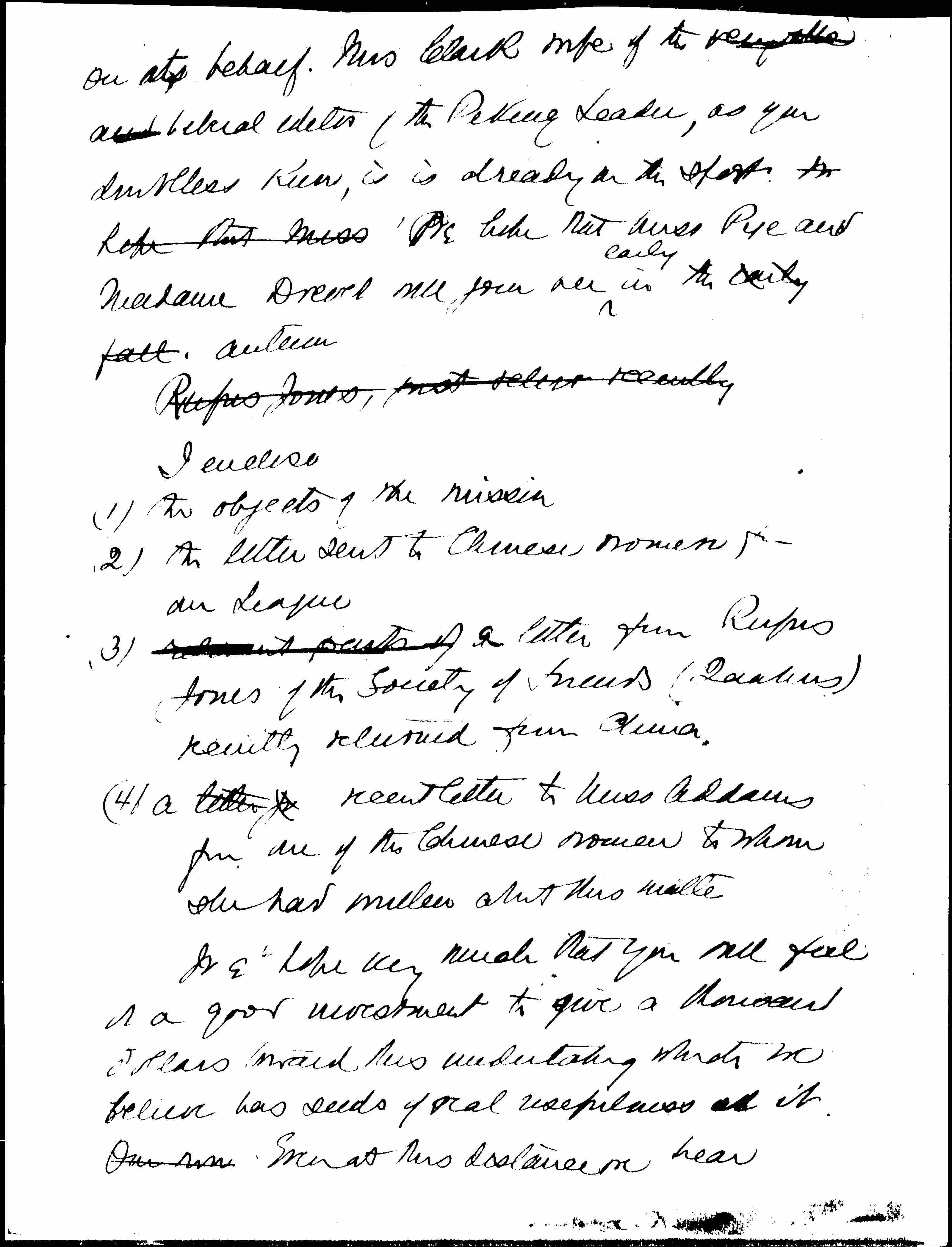 (4) a letter [illegible] recent letter to Miss Addams from one of the Chinese women to whom she had written about this matter