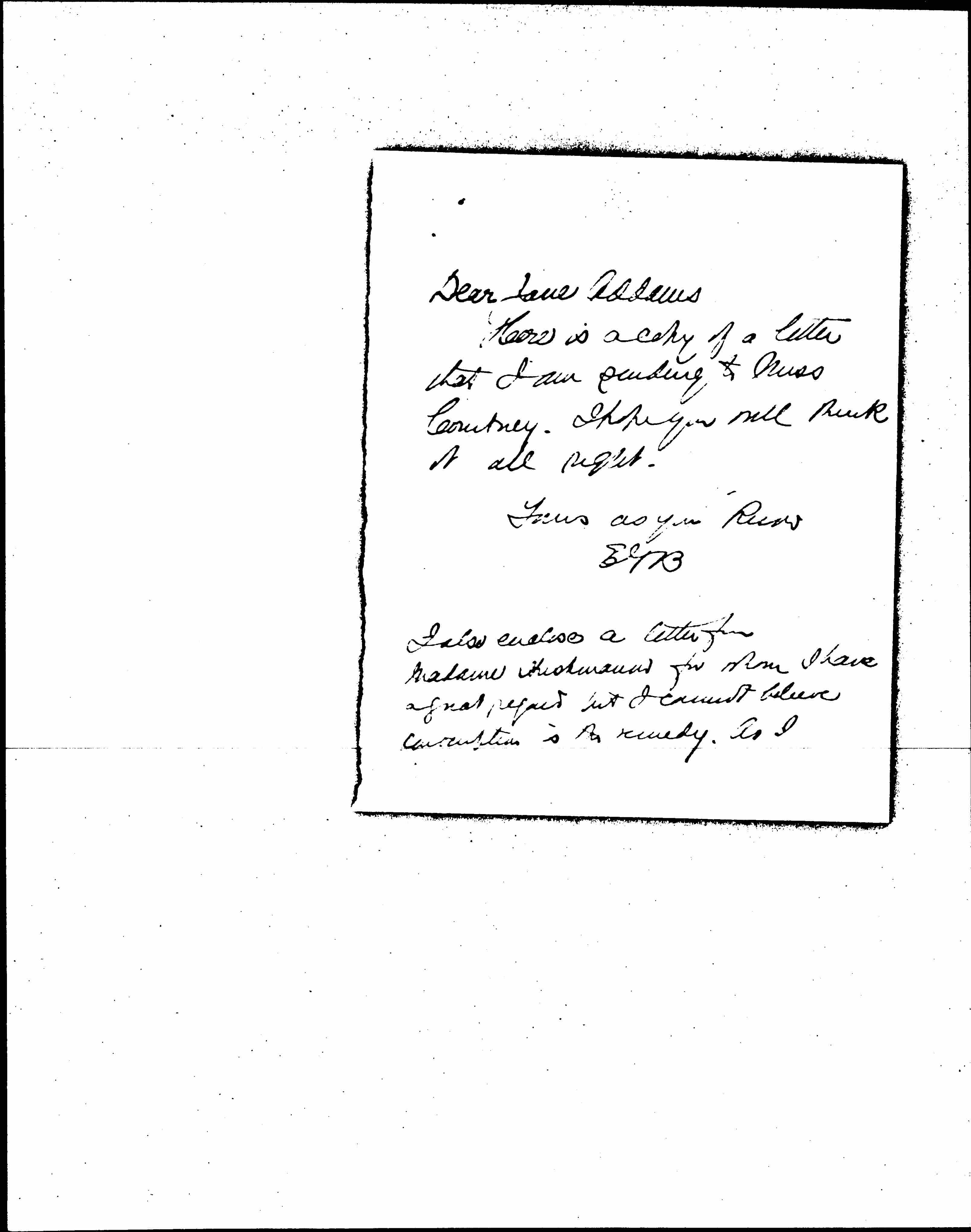 I also enclose a letter from Madam Shishmanova for whom I have a great regard but I cannot believe conscription is the remedy. As I [page 2] think I wrote you I did not go to Bulgaria for fear we might be dangerous guests.