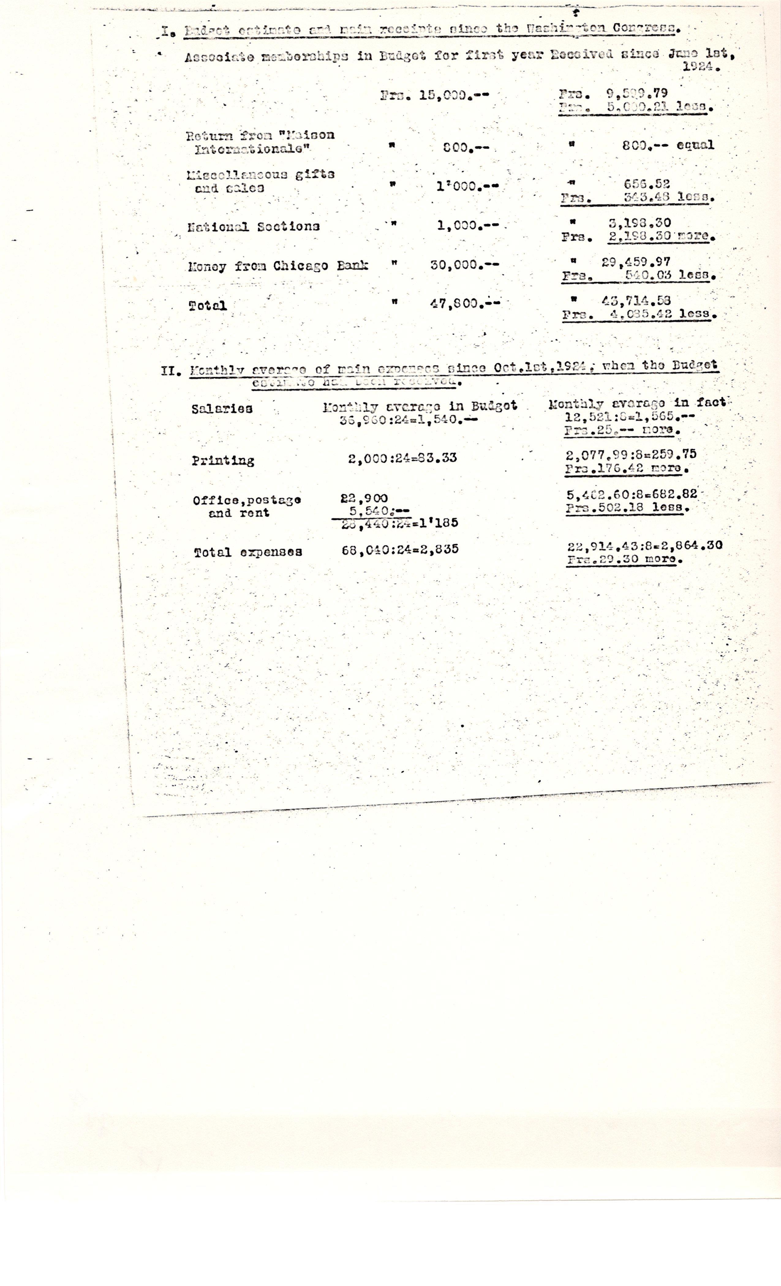 | National Sections | [Frs.] 1,000.-- | [Frs.] 3,193.30.-- Frs. 2,198.30 more. |