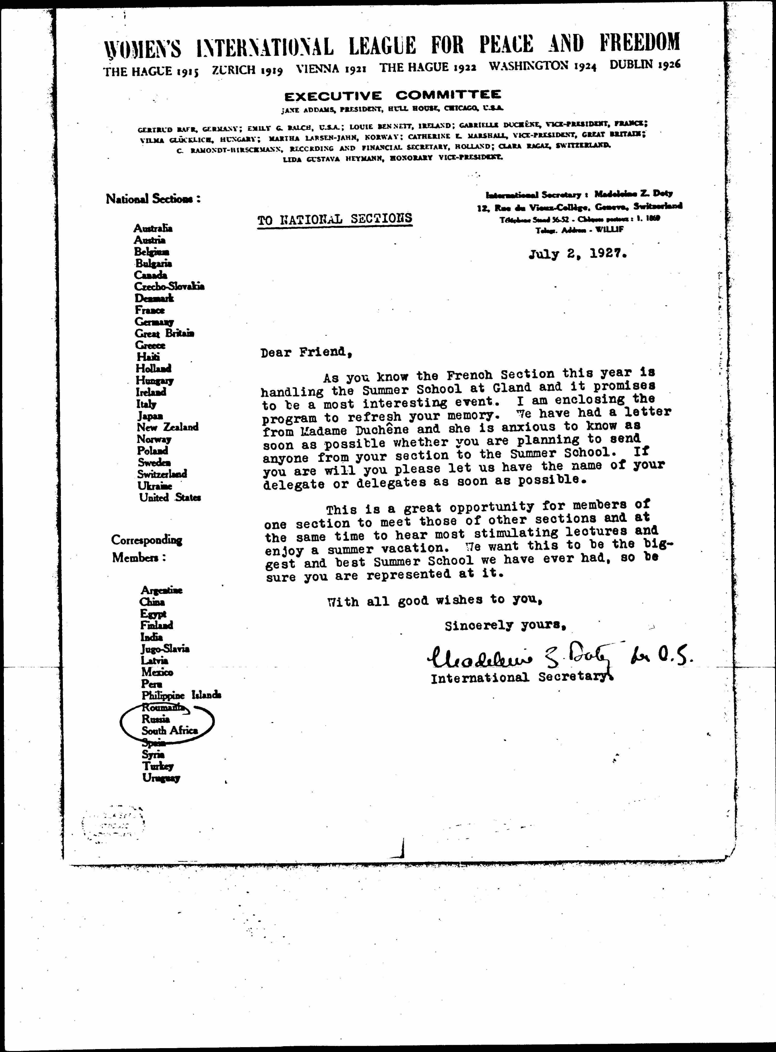 As you know the French Section this year is handling the Summer School at Gland and it promises to be a most interesting event. I am enclosing the program to refresh your memory. We have had a letter from Madame Duchêne and she is anxious to know as soon as possible whether you are planning to send anyone from your section to the Summer School. If you are will you please let us have the name of your delegate or delegates as soon as possible.