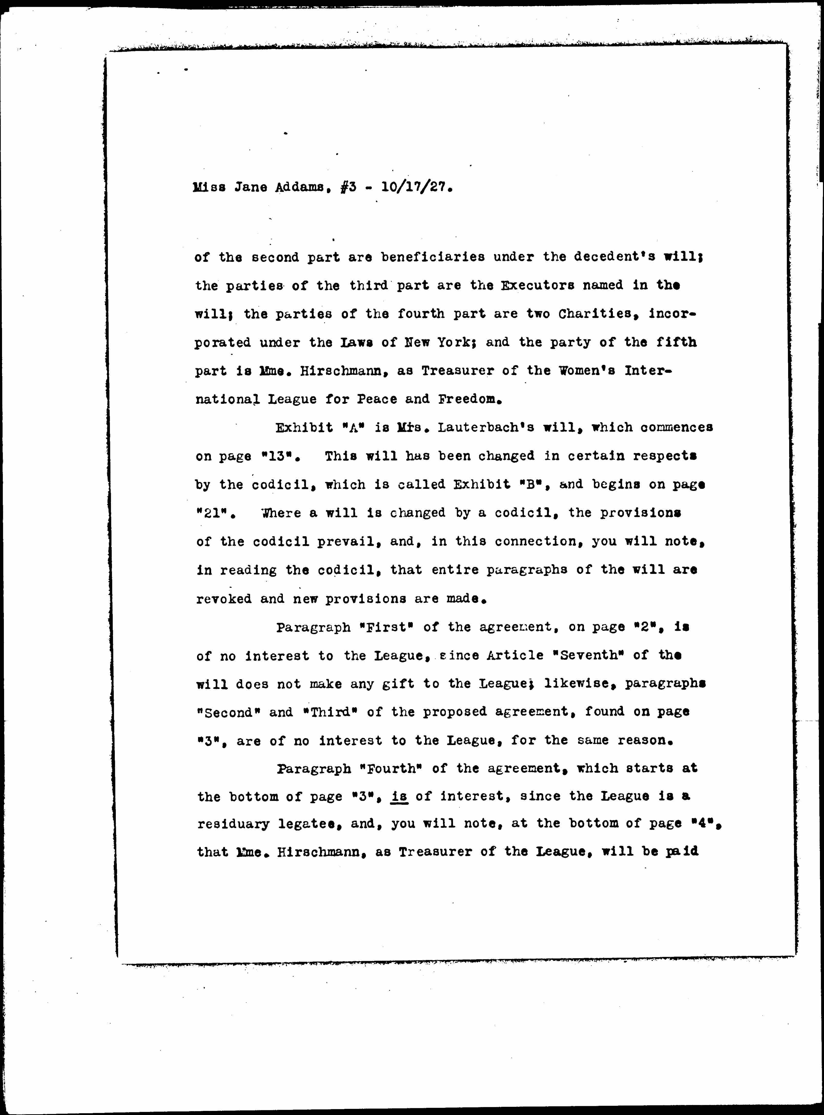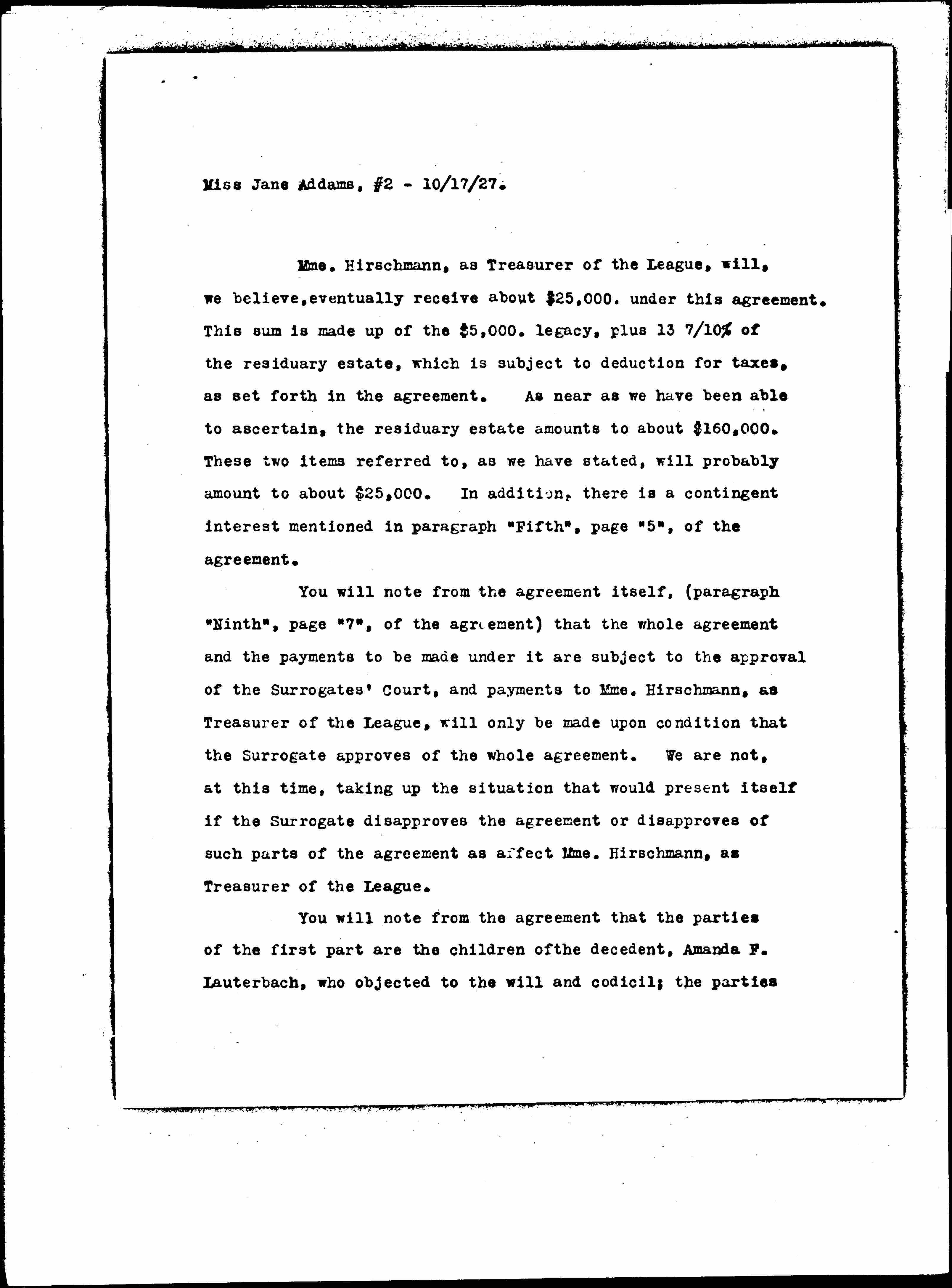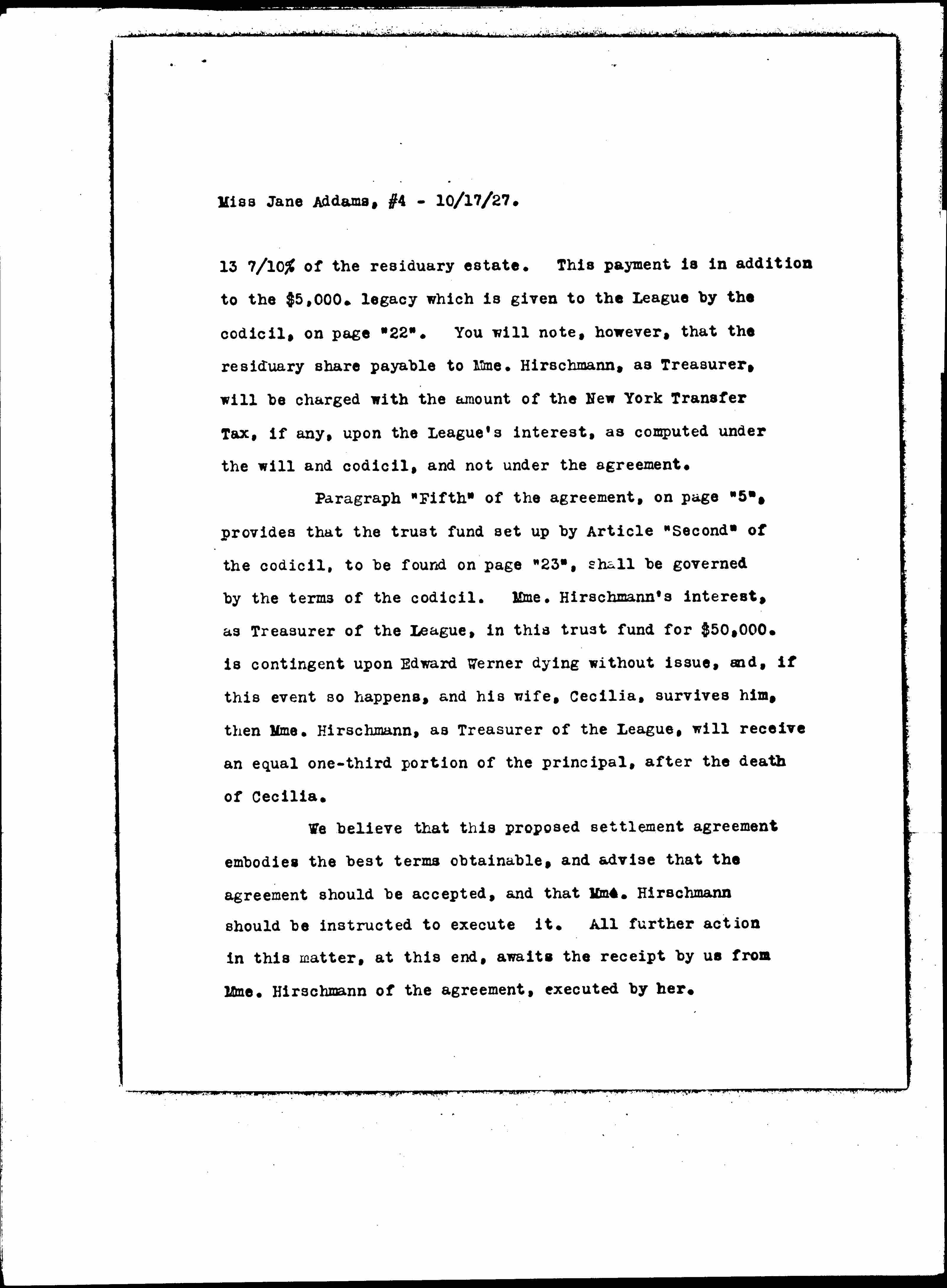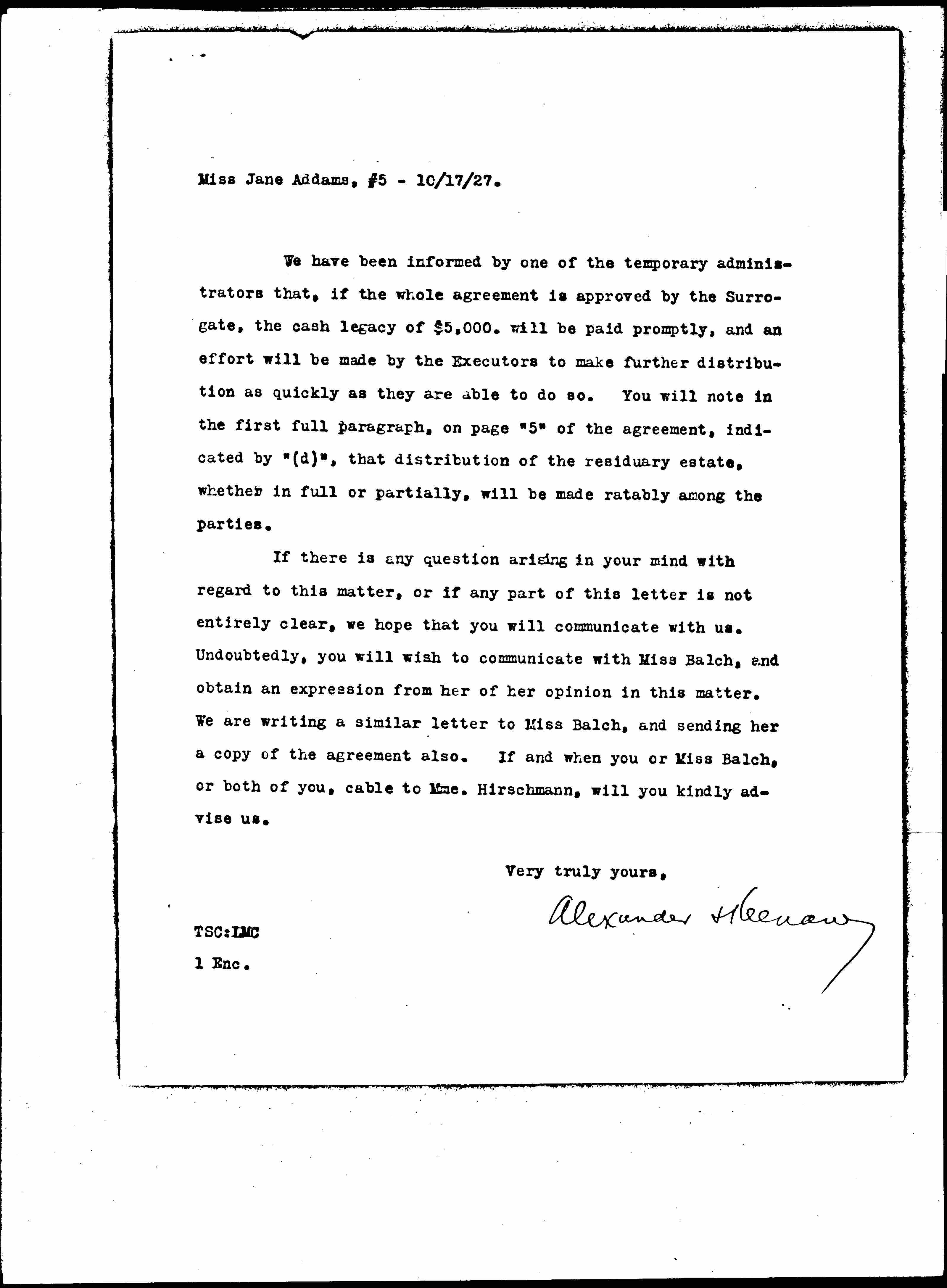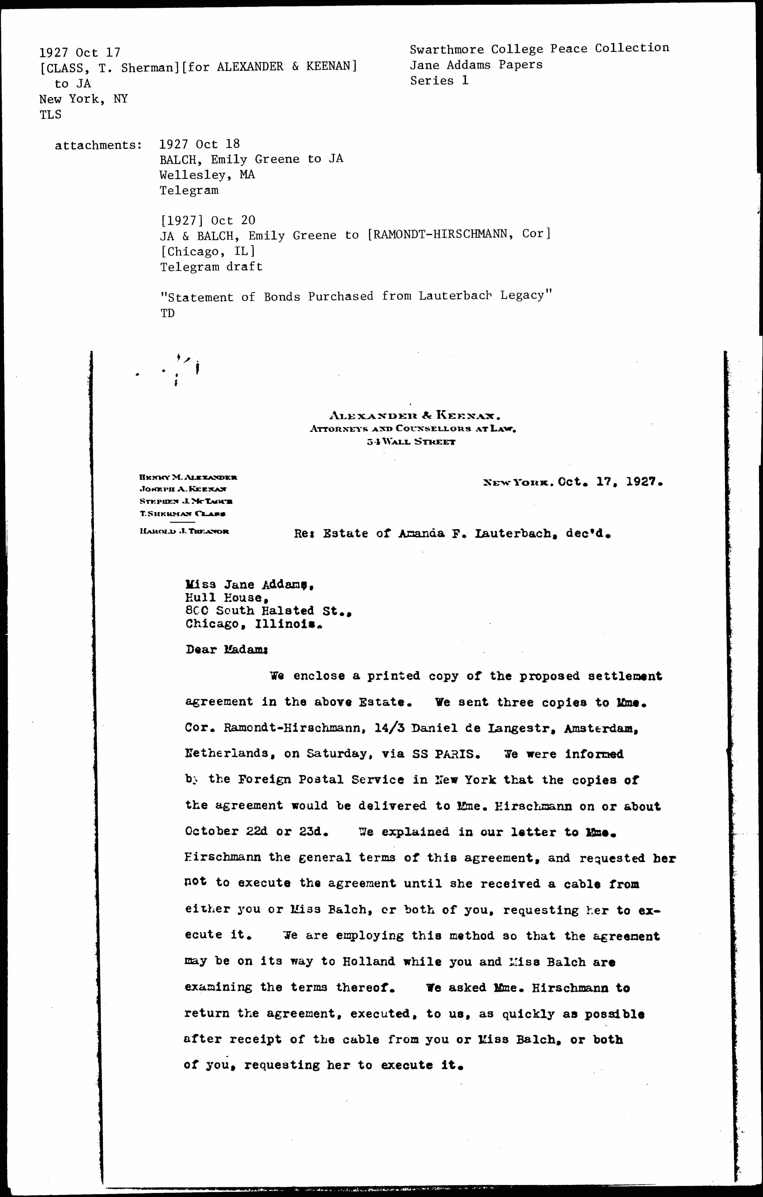 Jane Addams to Alexander & Keenan, October 20, 1927
