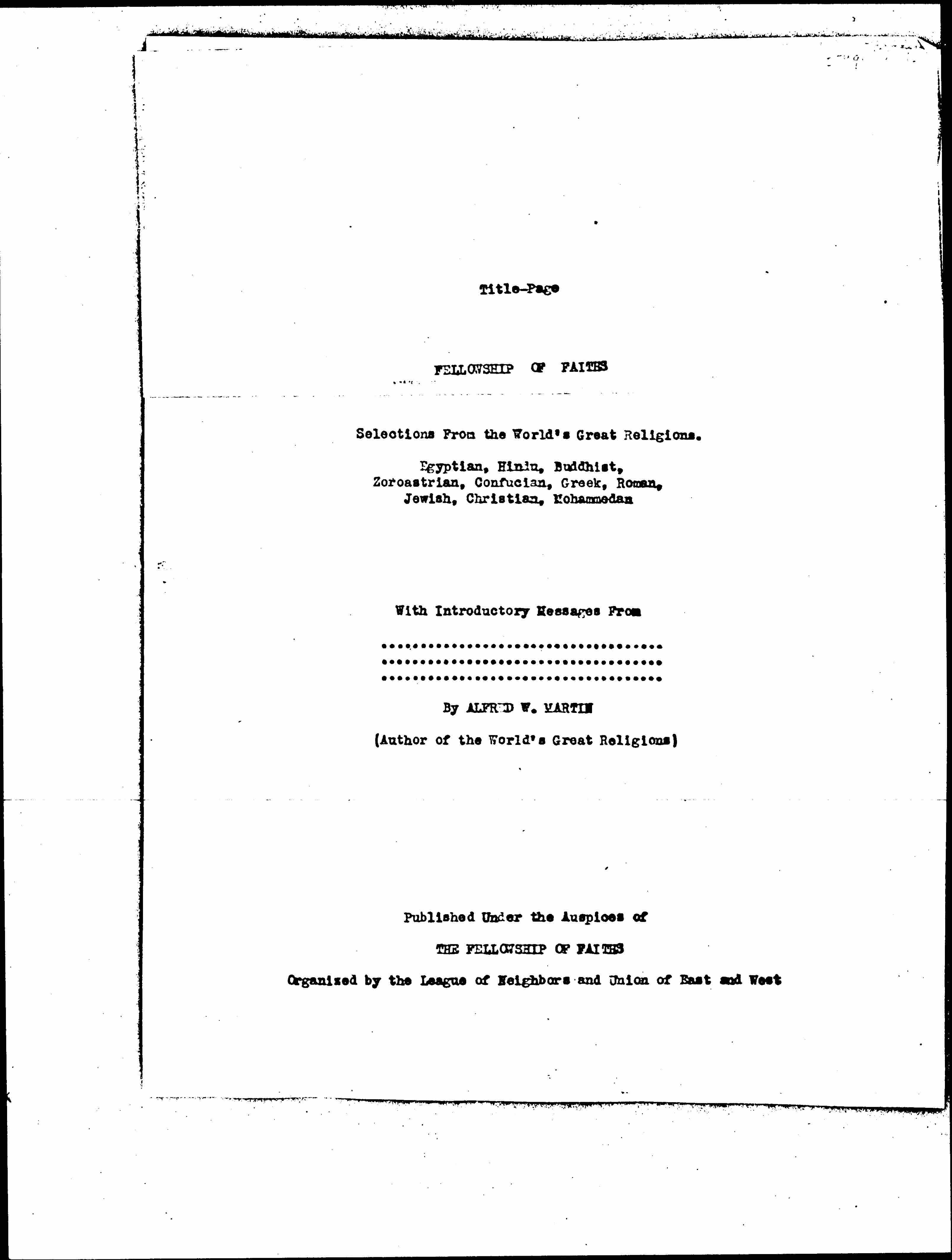 This method of presentation is exemplified in the two marked sections of the enclosed printed folder, entitled Fellowship of Faiths MESSAGES.