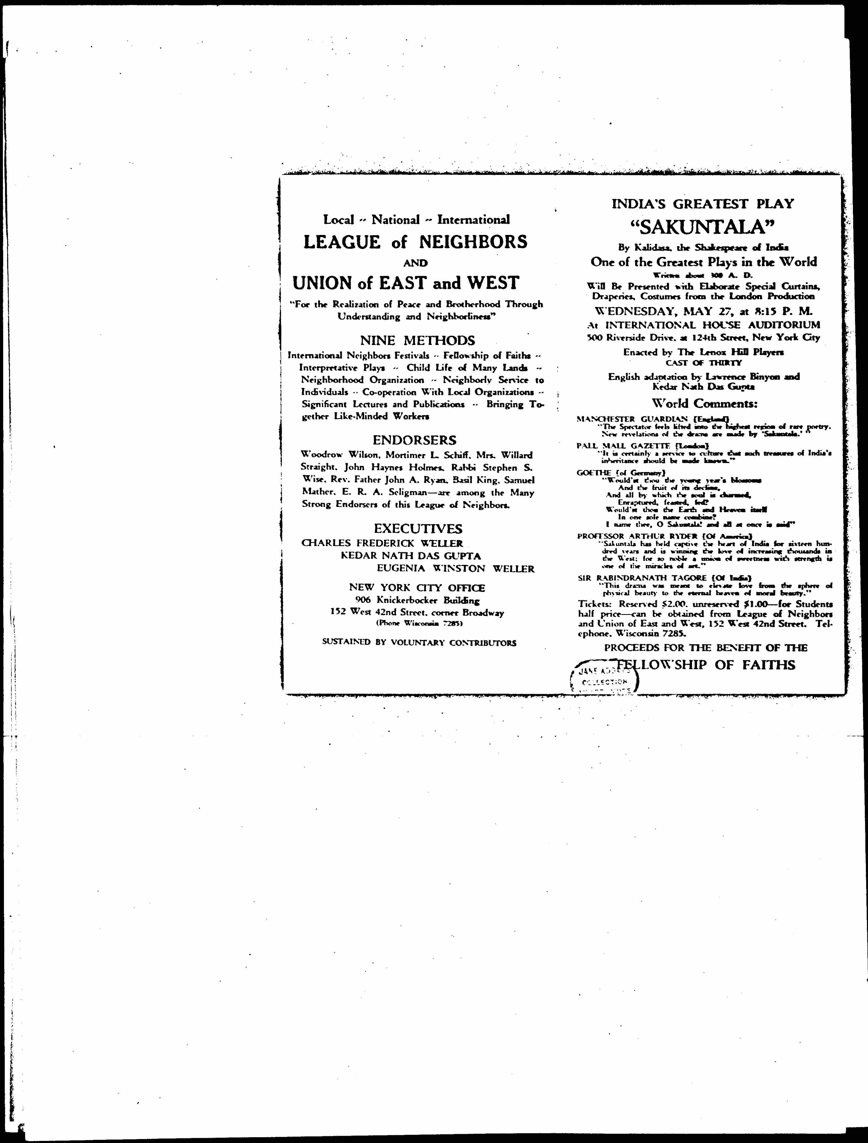 International Neighbors Festivals -- Fellowship of Faiths -- Interpretive Plays -- Child Life of Many Lands -- Neighborhood Organization -- Neighborly Service to Individuals -- [Cooperation] With Local Organization -- Significant Lectures and Publications --Bringing Together Like-Minded Workers