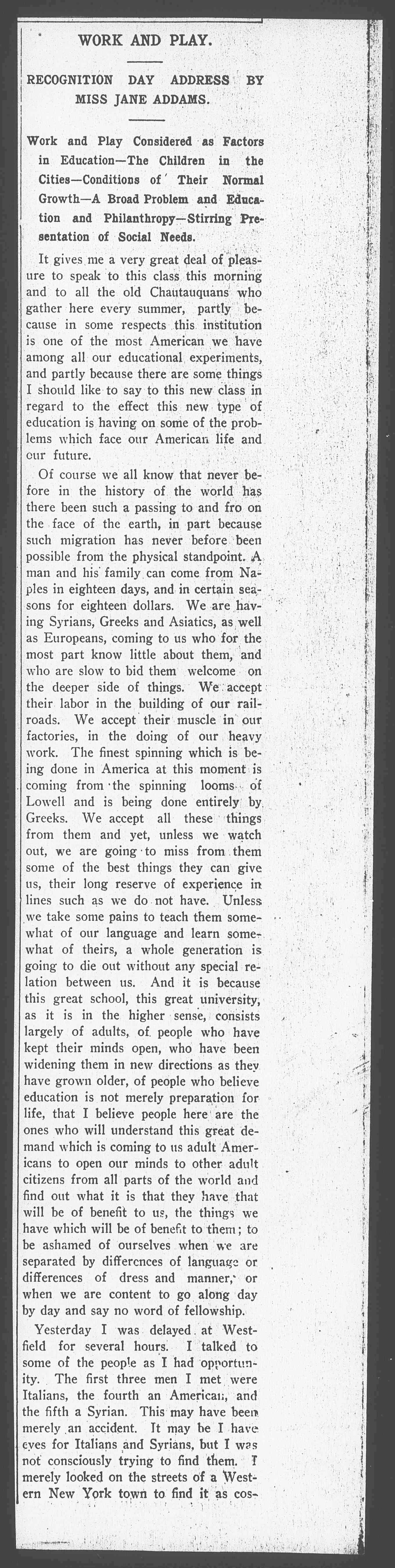 RECOGNITION DAY ADDRESS BY MISS JANE ADDAMS.