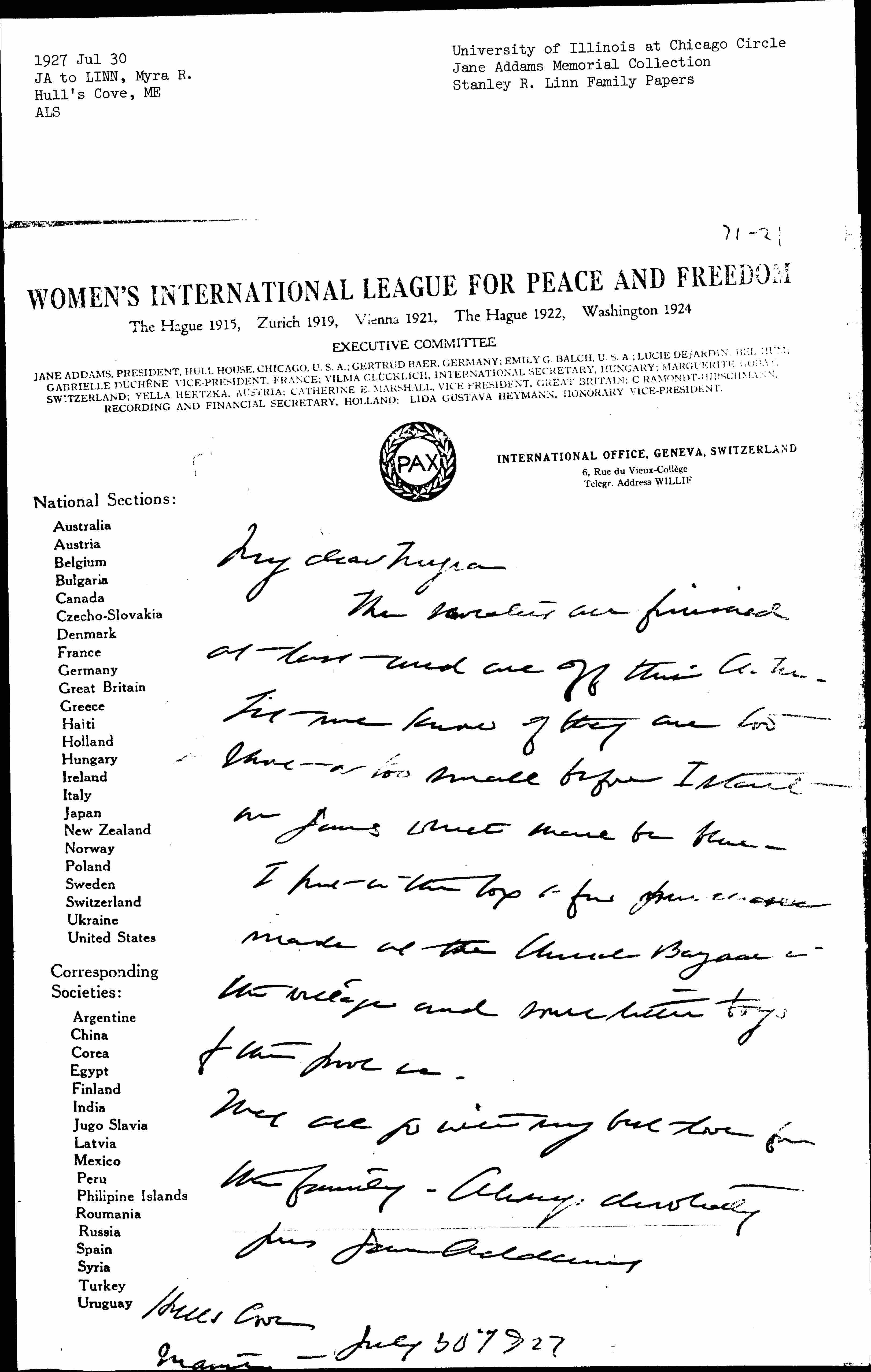 They all go with my best love for the family. Always devotedly yours Jane Addams
