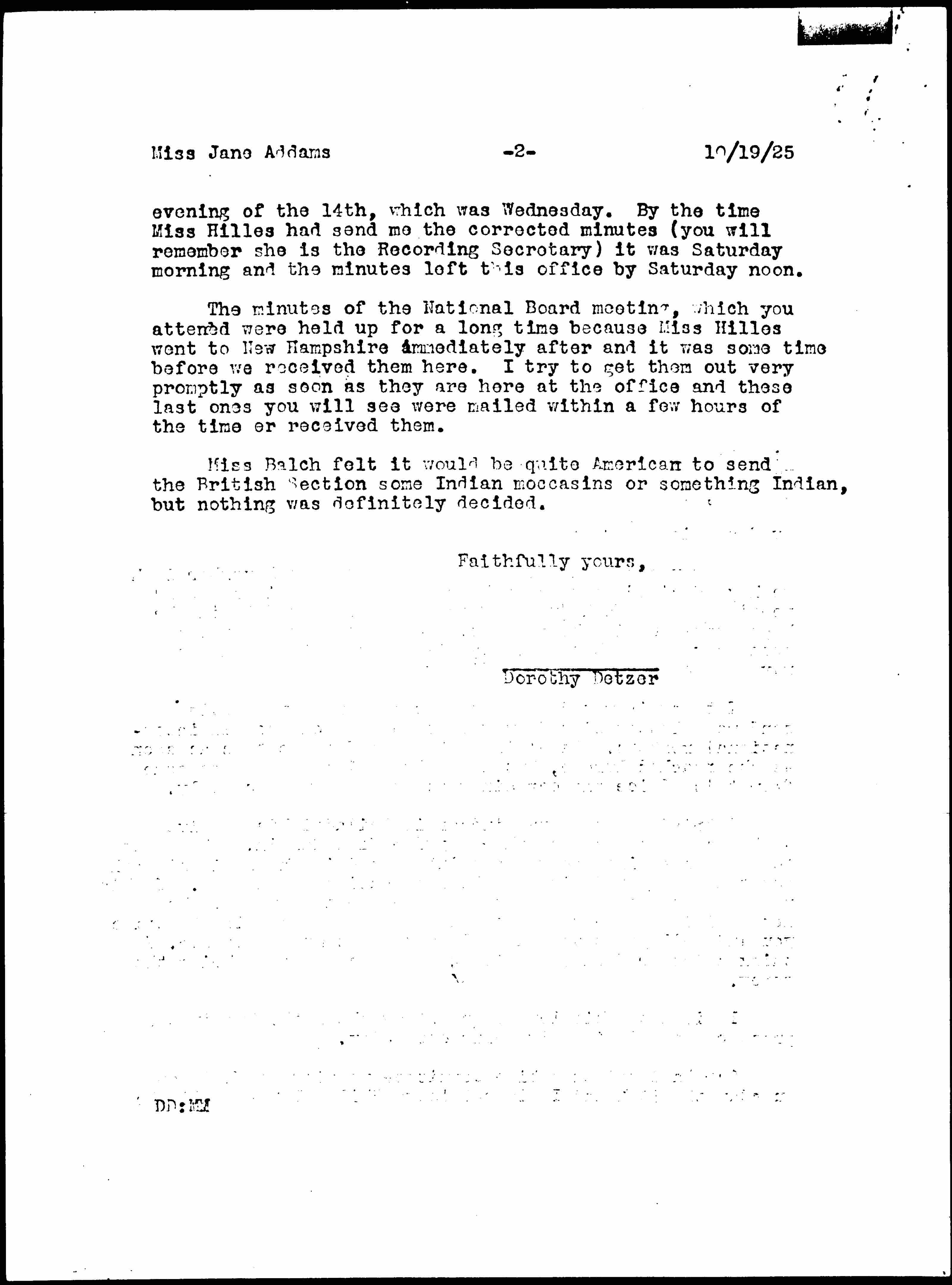 Our National Executive Committee meeting was held on Tuesday the 13th and I did not leave Philadelphia until the [page 2] evening of the 14th, which was Wednesday. By the time Miss Hilles had send me the corrected minutes (you will remember she is the Recording Secretary) it was Saturday morning and the minutes left this office by Saturday noon.