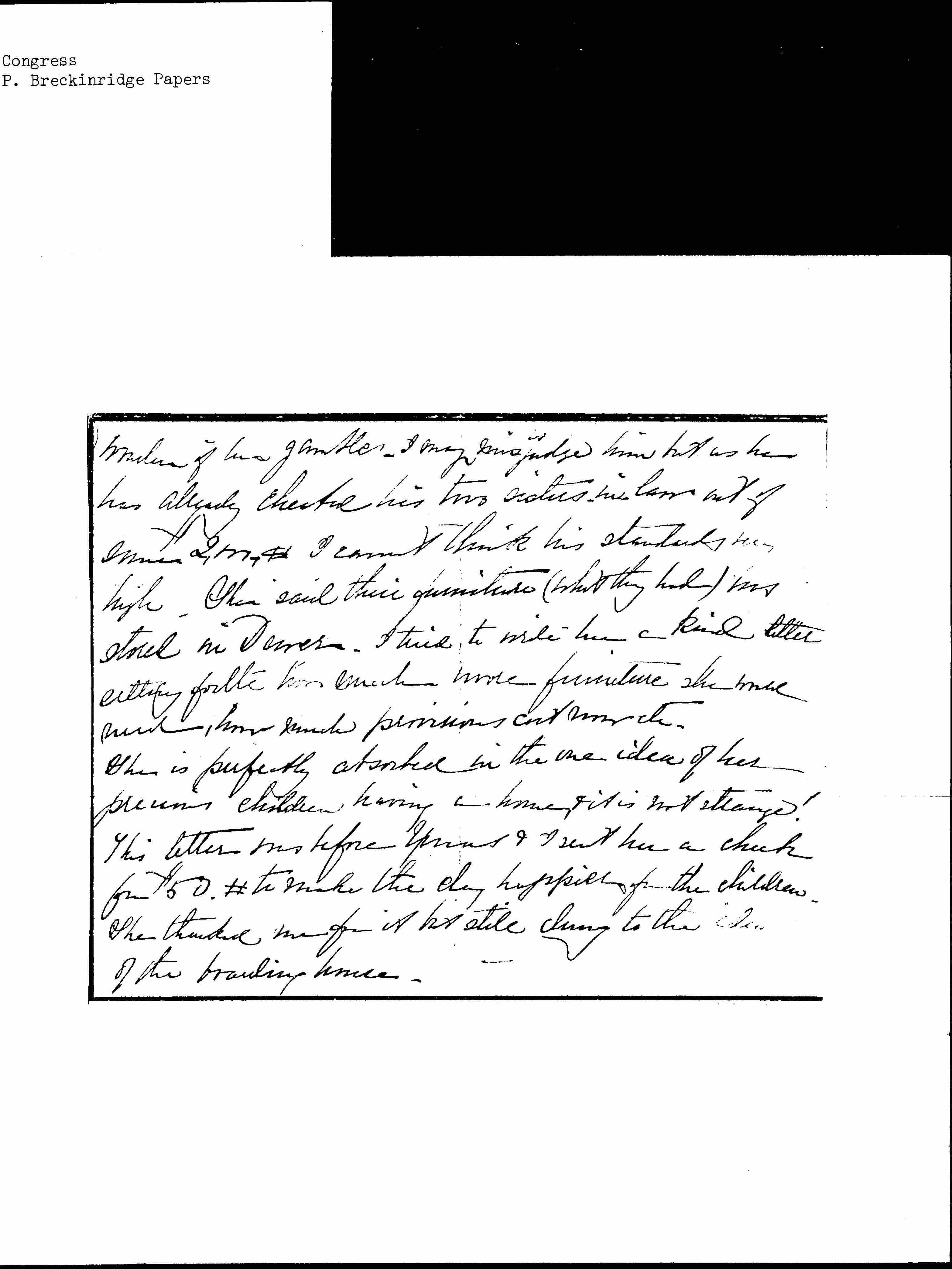 She is perfectly absorbed in the one idea of her precious children having a home, & it is not strange! This letter was before Xmas & I sent her a check for $50.# to make the day happier for the children. She thanked me for it but still clung to the idea of the boarding house. [page 5]