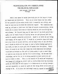 One could go on and challenge social work for not making clear [page 4] the ethical part of its task because he has not done two things. He has not become a fact finding agency. That has been taken out of our hands by the universities and other bodies, -- one of which has been quoted to us just now as a fine effort to determine economic values of social work; but also the social worker still has a burden laid upon him of making clear that type of human experience and human reaction which comes to him who is brought close to ignorance, poverty, disease, vice and crime. If there is not some ↑definite↓ reaction as a result of his experience, to my opinion he is failing.