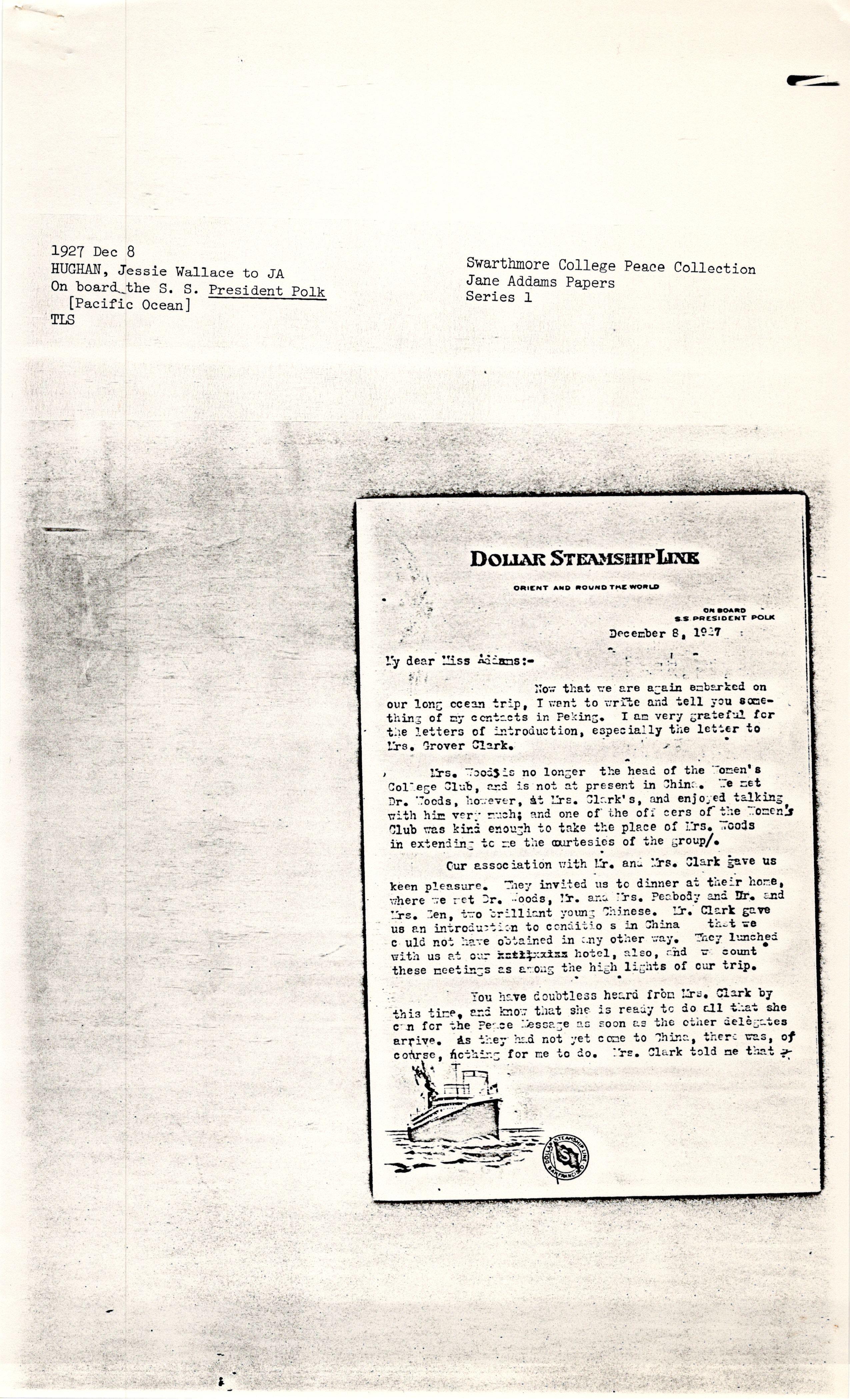 Jessie Wallace Hughan to Jane Addams, December 8, 1927