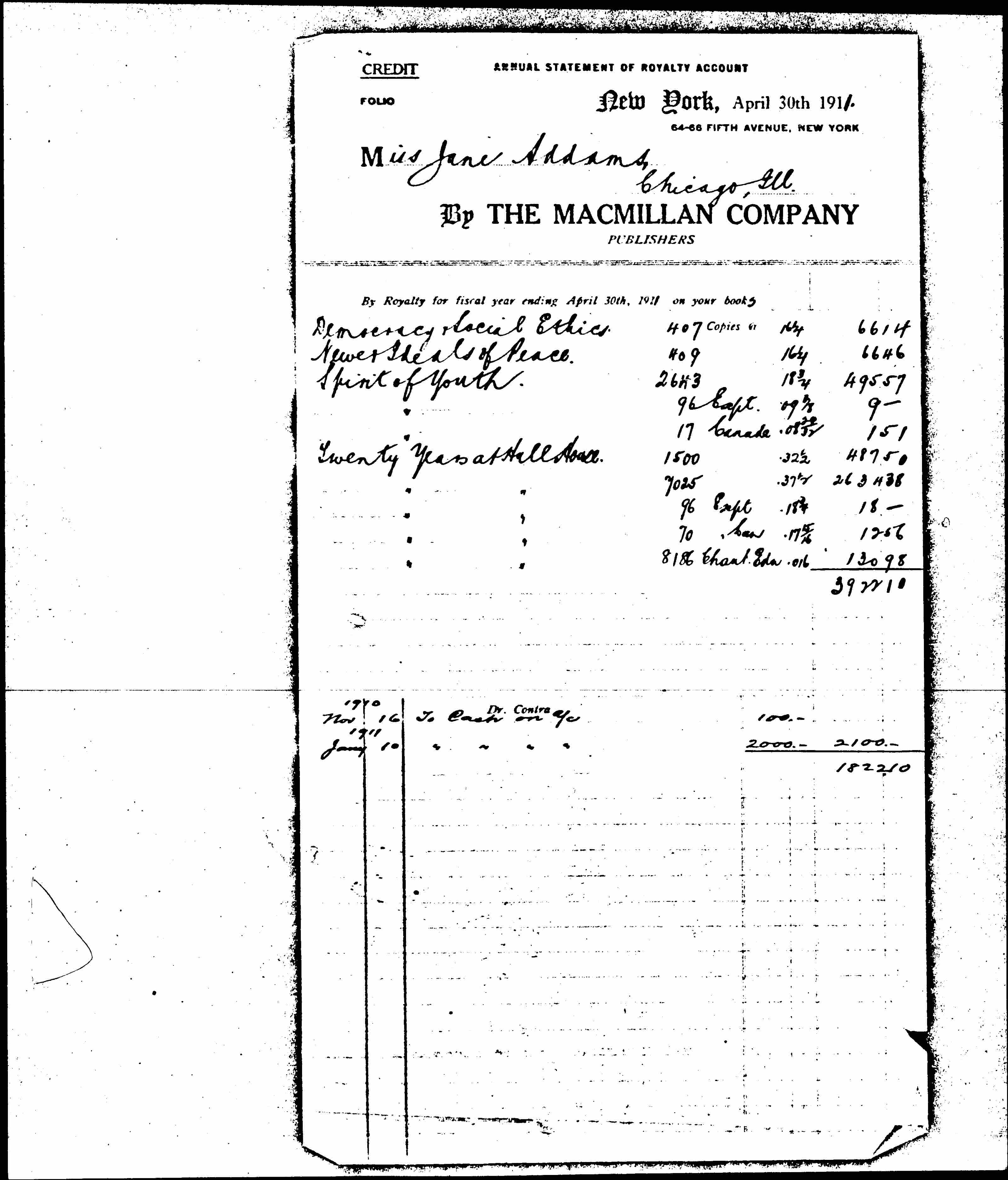 By Royalty for fiscal year ending April 30th, 1911 on your books