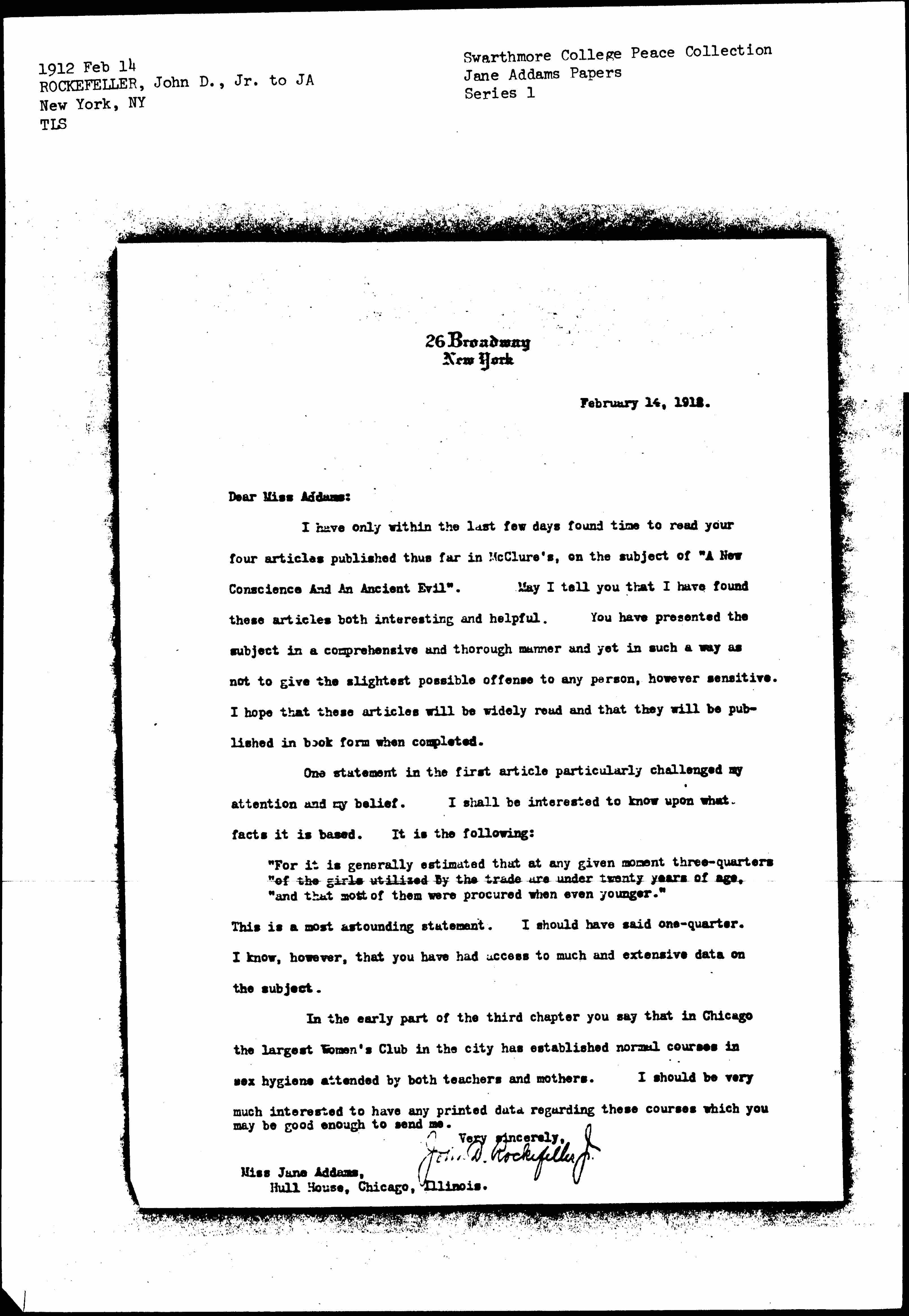 I have only within the last few days found time to read your four articles published thus far in McClure's, on the subject of "A New Conscience And An Ancient Evil." May I tell you that I have found these articles both interesting and helpful. You have presented the subject in a comprehensive and thorough manner and yet in such a way as not to give the slightest possible offense to any person, however sensitive. I hope that these articles will be widely read and that they will be published in book form when completed.