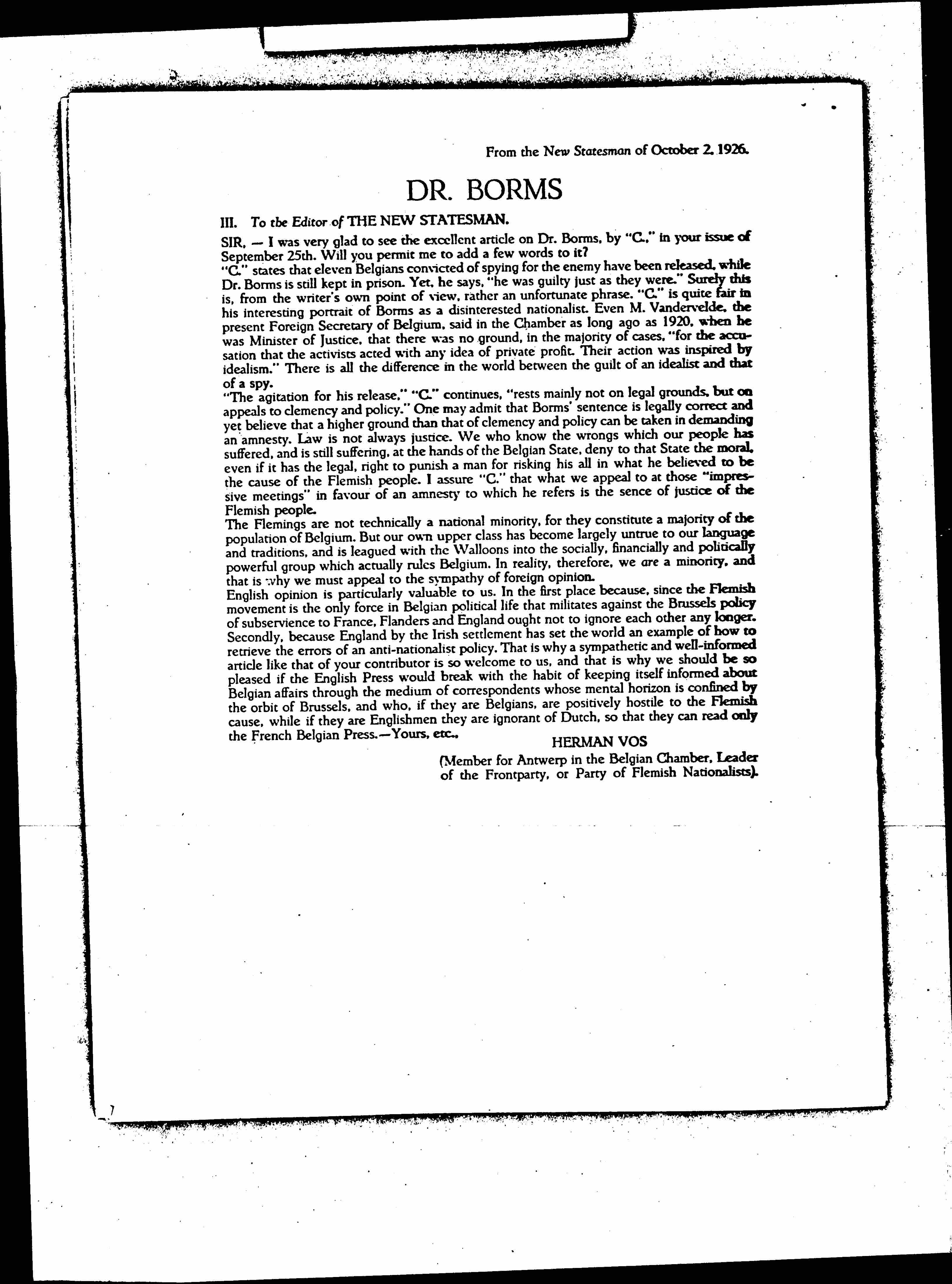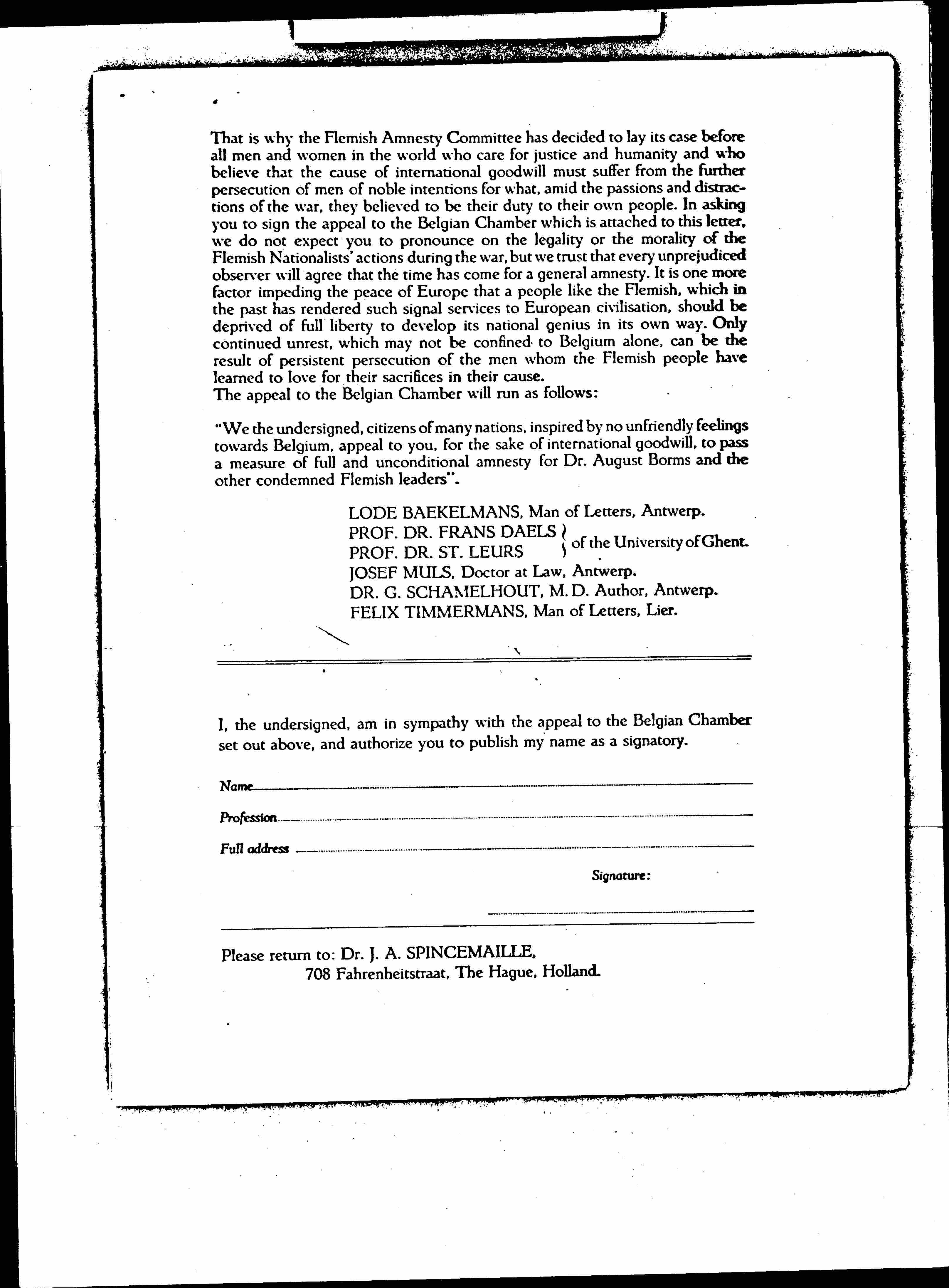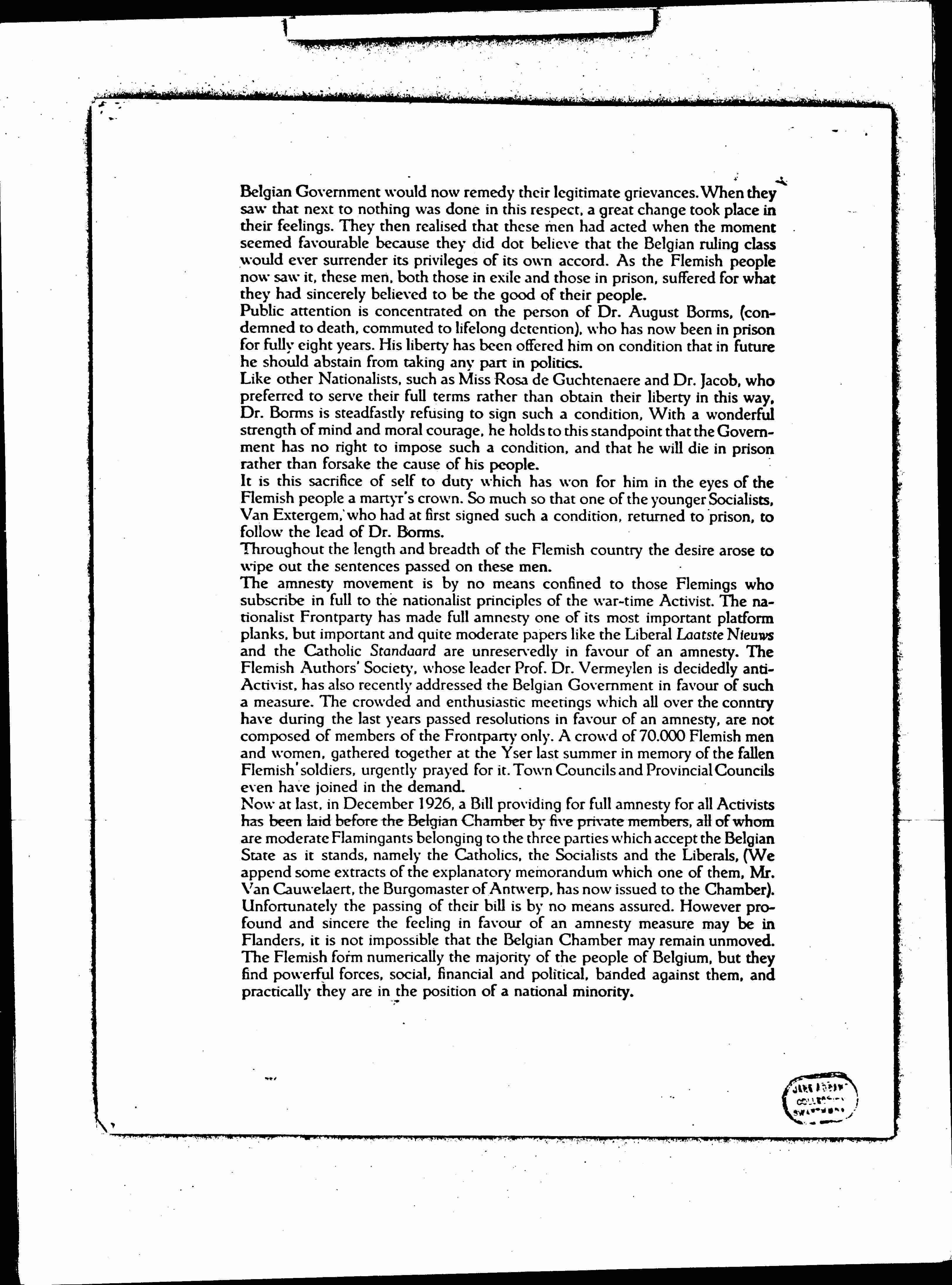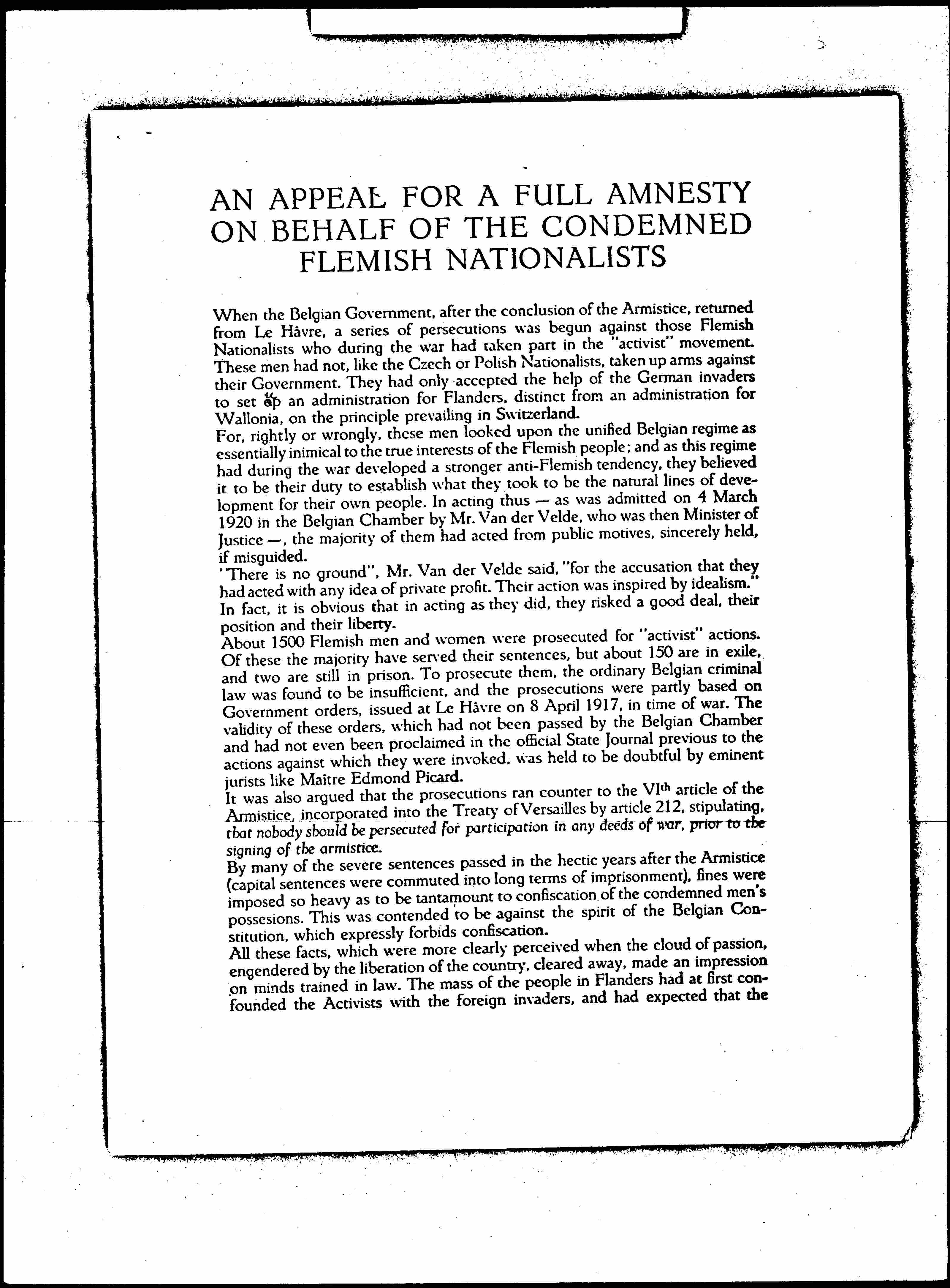 An Appeal For a Full Amnesty on Behalf of the Condemned Flemish Nationalists, October 1927