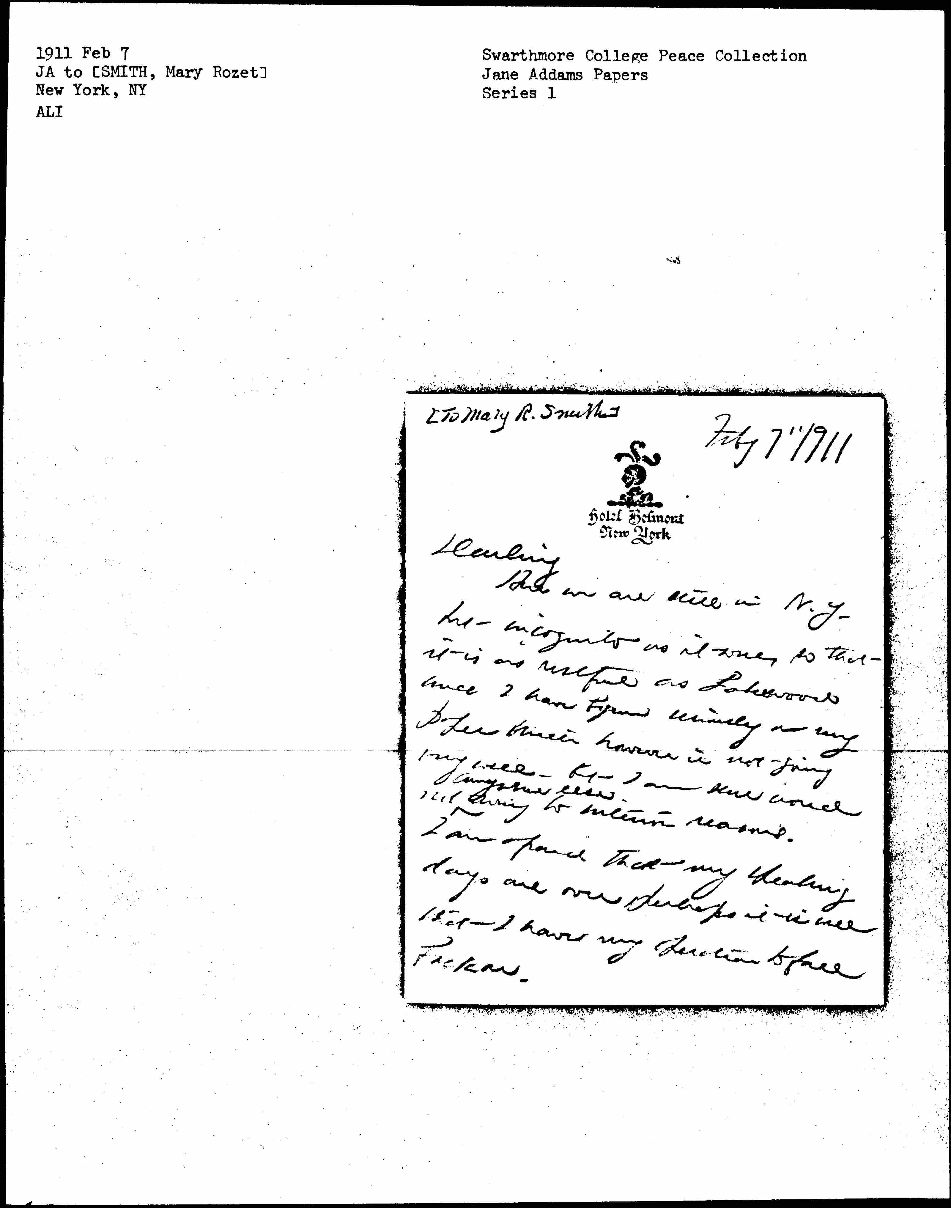 Jane Addams to Mary Rozet Smith, February 7, 1911