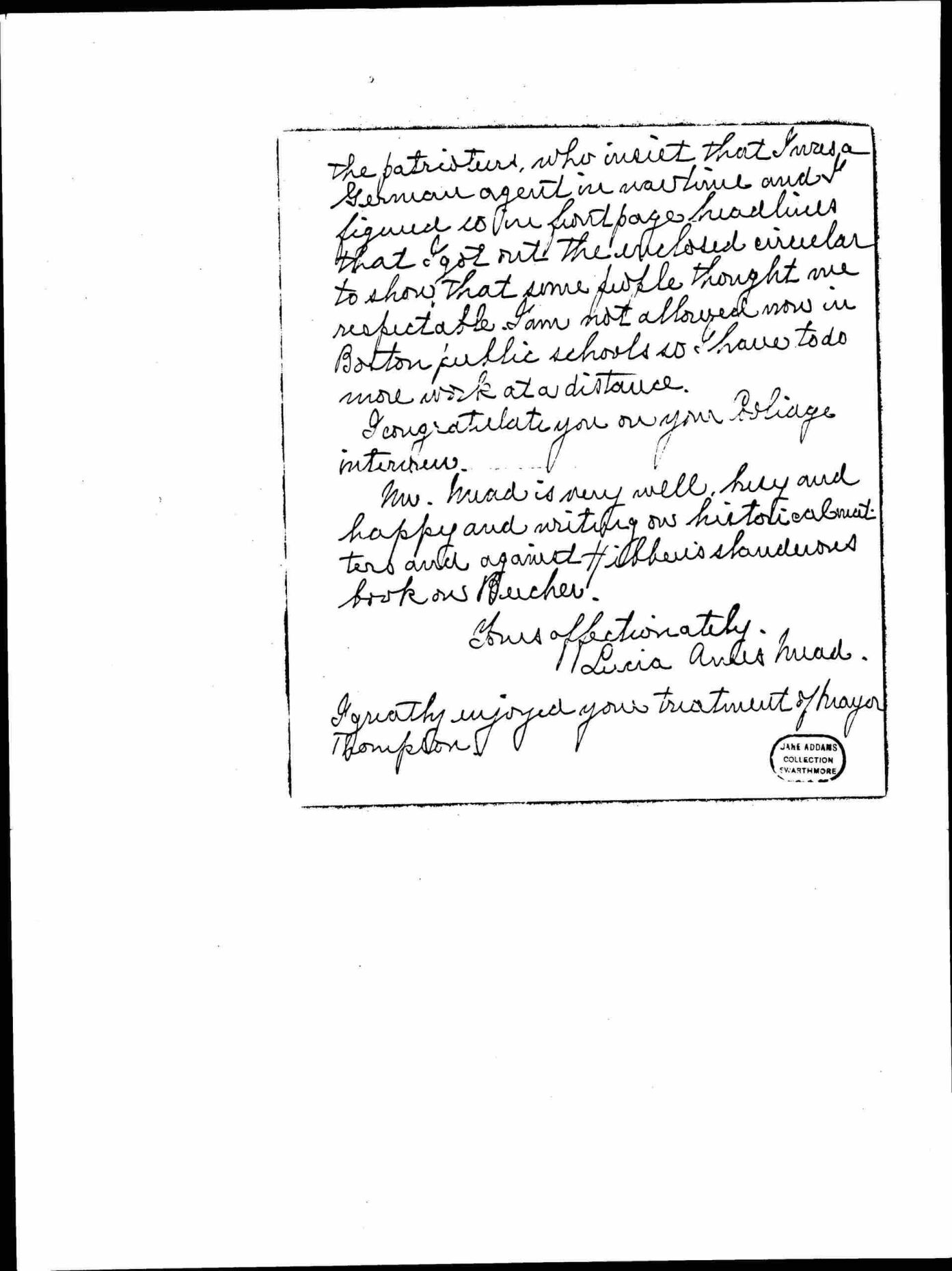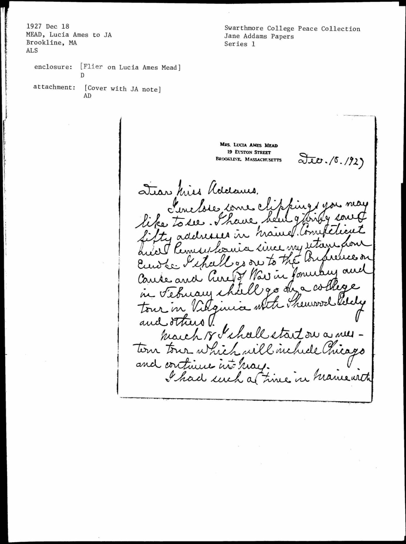 Lucia Ames Mead to Jane Addams, December 18, 1927
