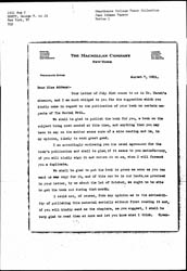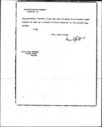 I could not, of course, form any opinion as to the advisability of publishing this material serially without first reading it and, if you will kindly send me the chapters, as you suggest, I shall be very glad to read them at once and let you know what I think. Speaking [page 2] generally, however, I may say that it seems to me usually inadvisable to take up a subject of this character in the popular magazines.