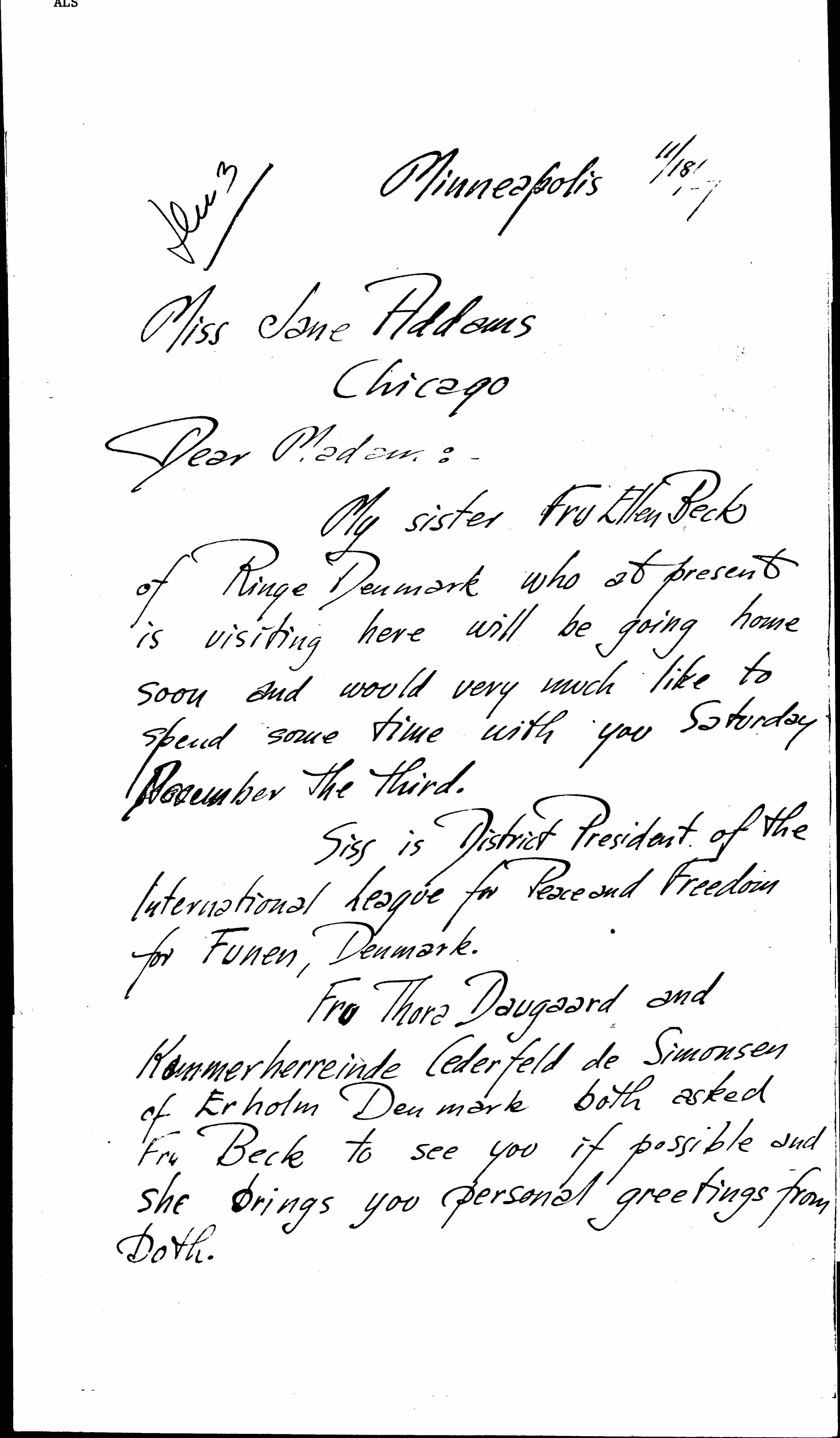 Jens Andreas Meyer to Jane Addams, November 18, 1927
