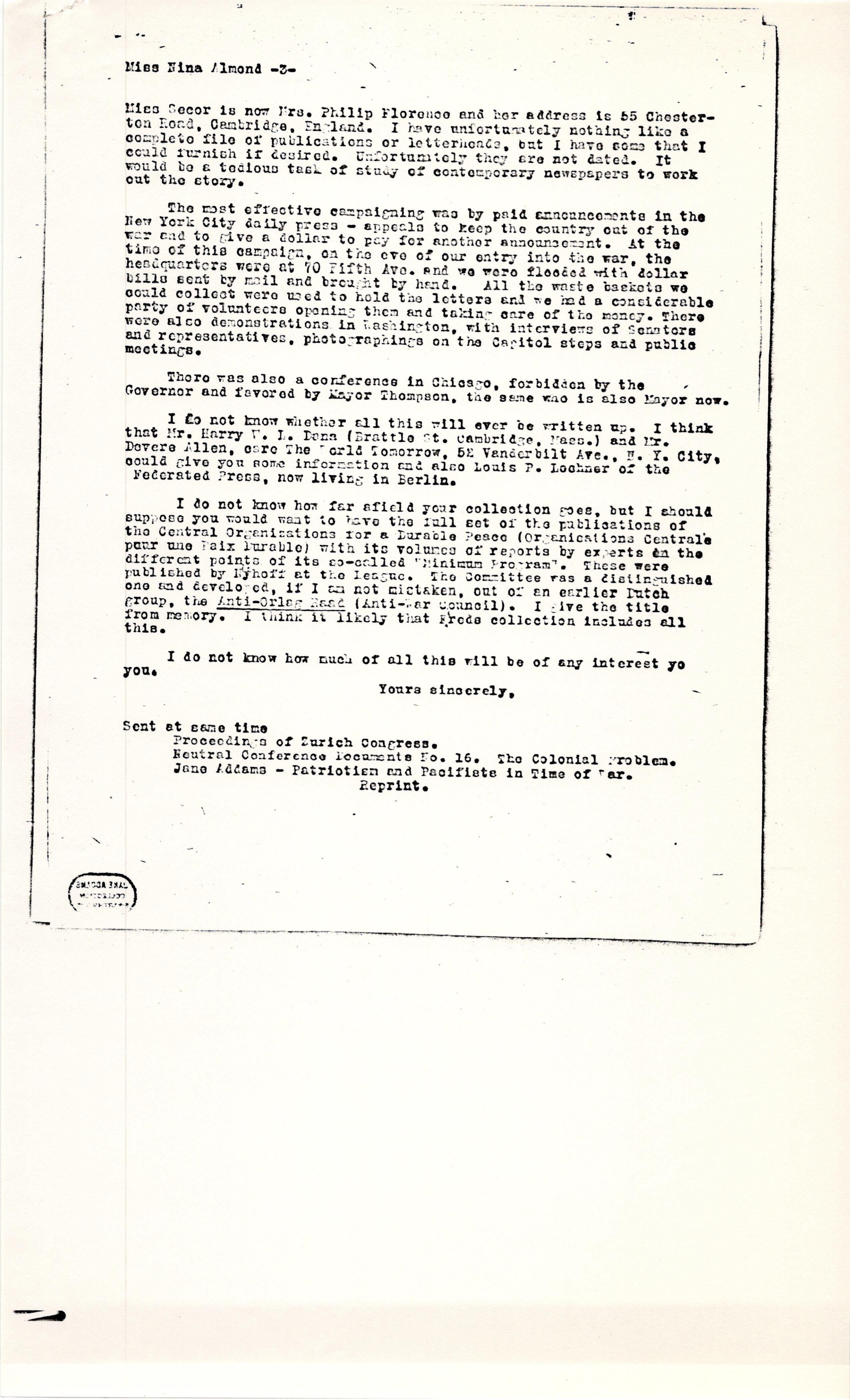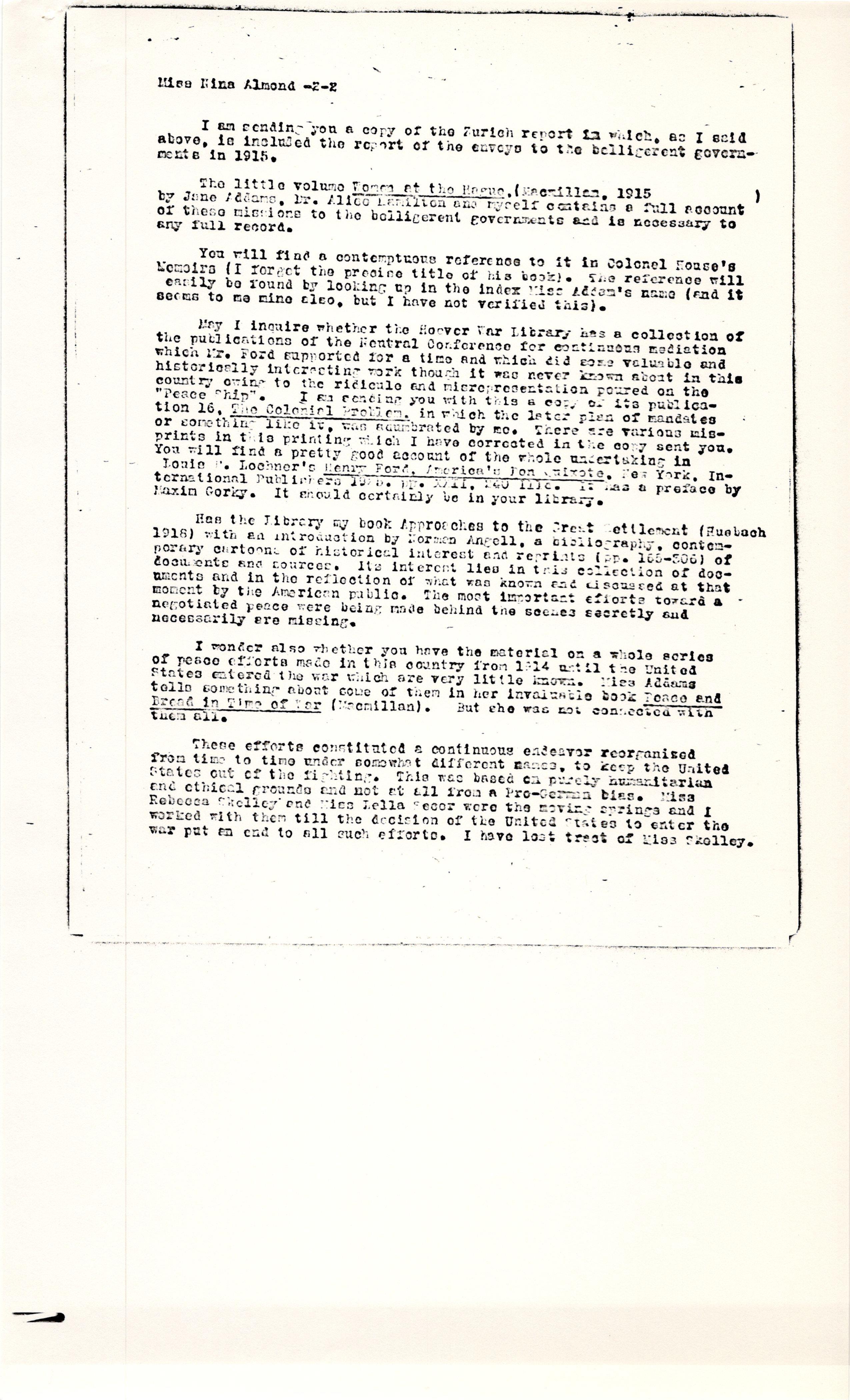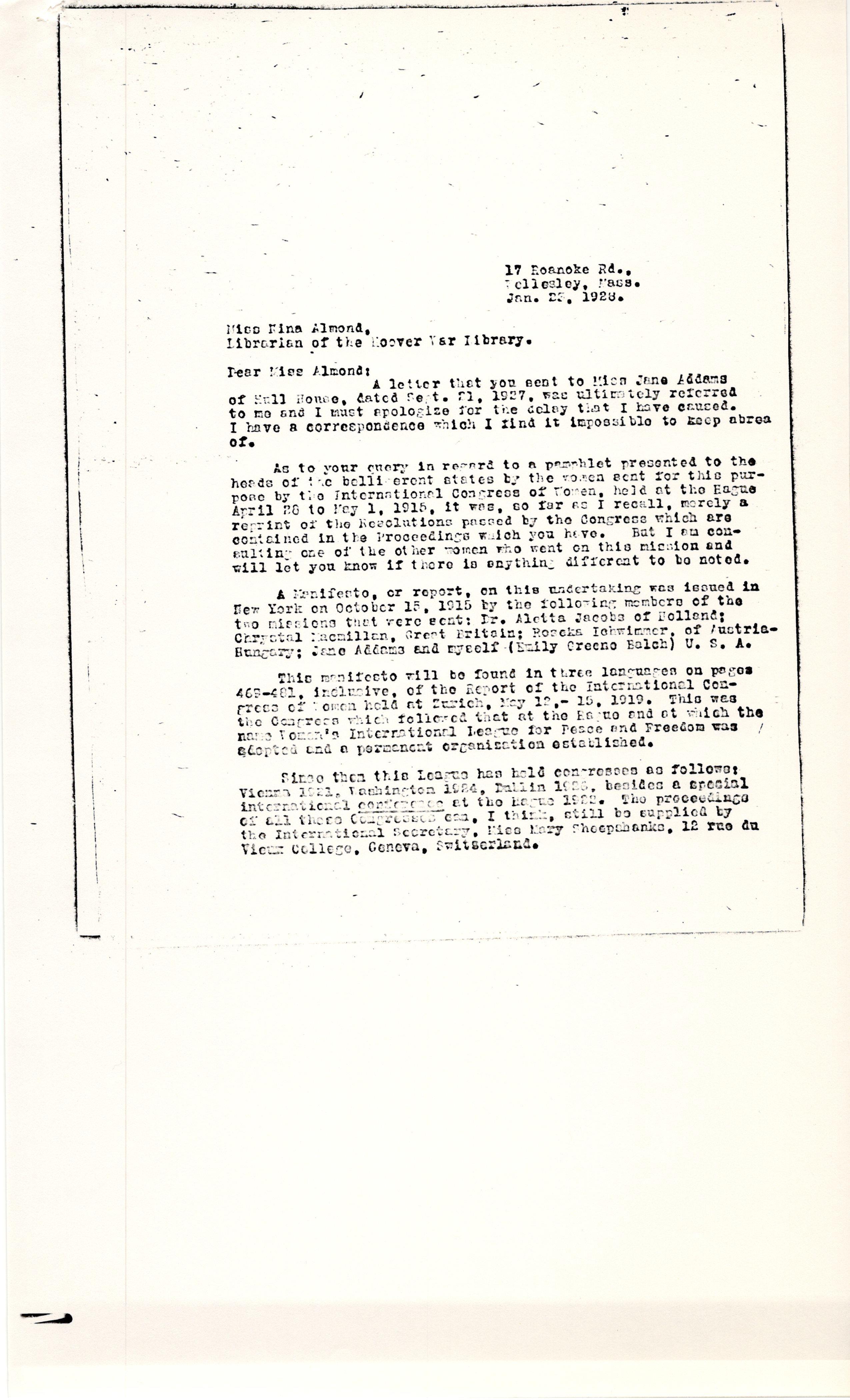 Emily Greene Balch to Nina E. Almond, January 23, 1928