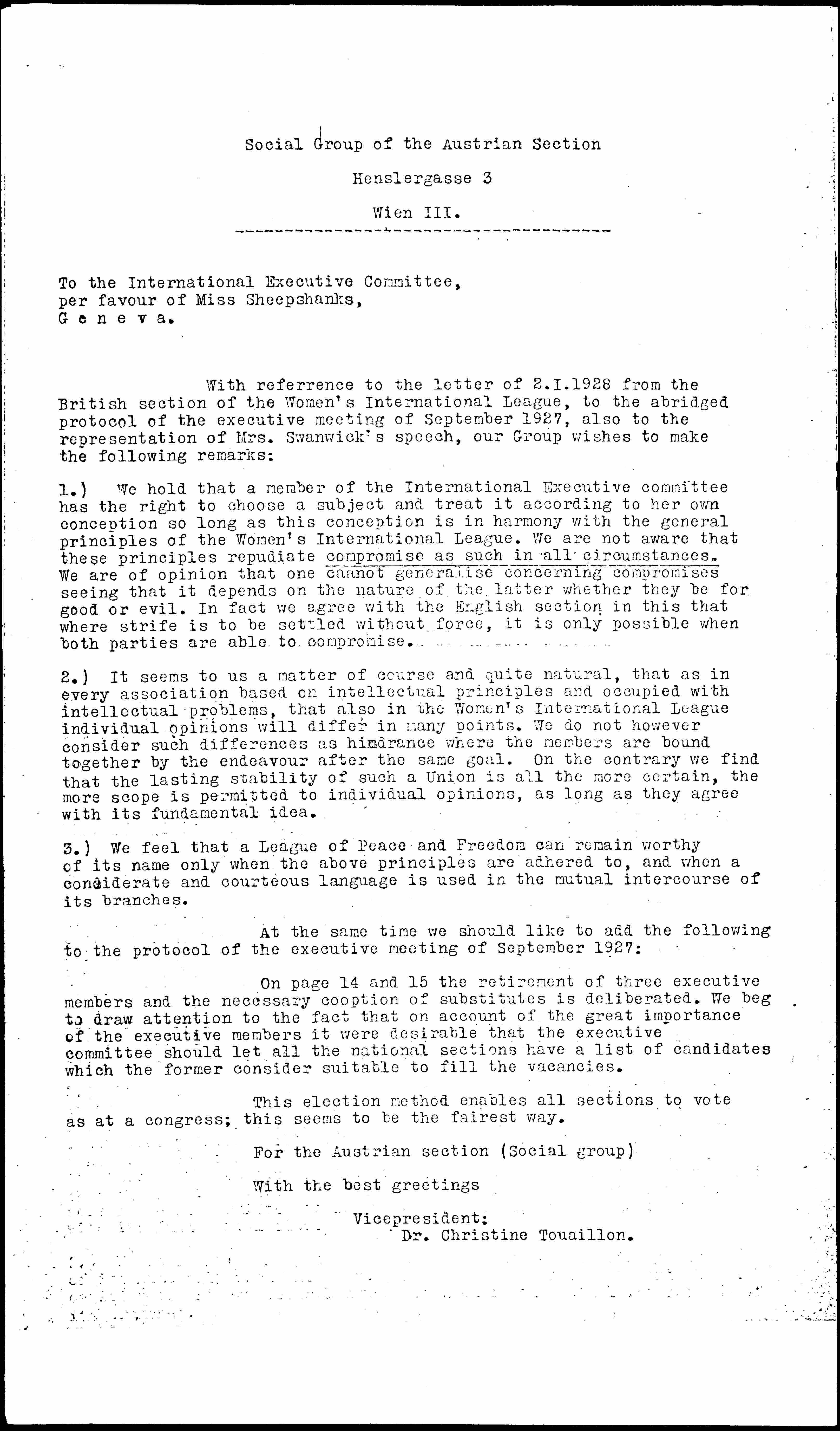 Christine Auspitz Touaillon to Mary Ryott Sheepshanks, February 1928