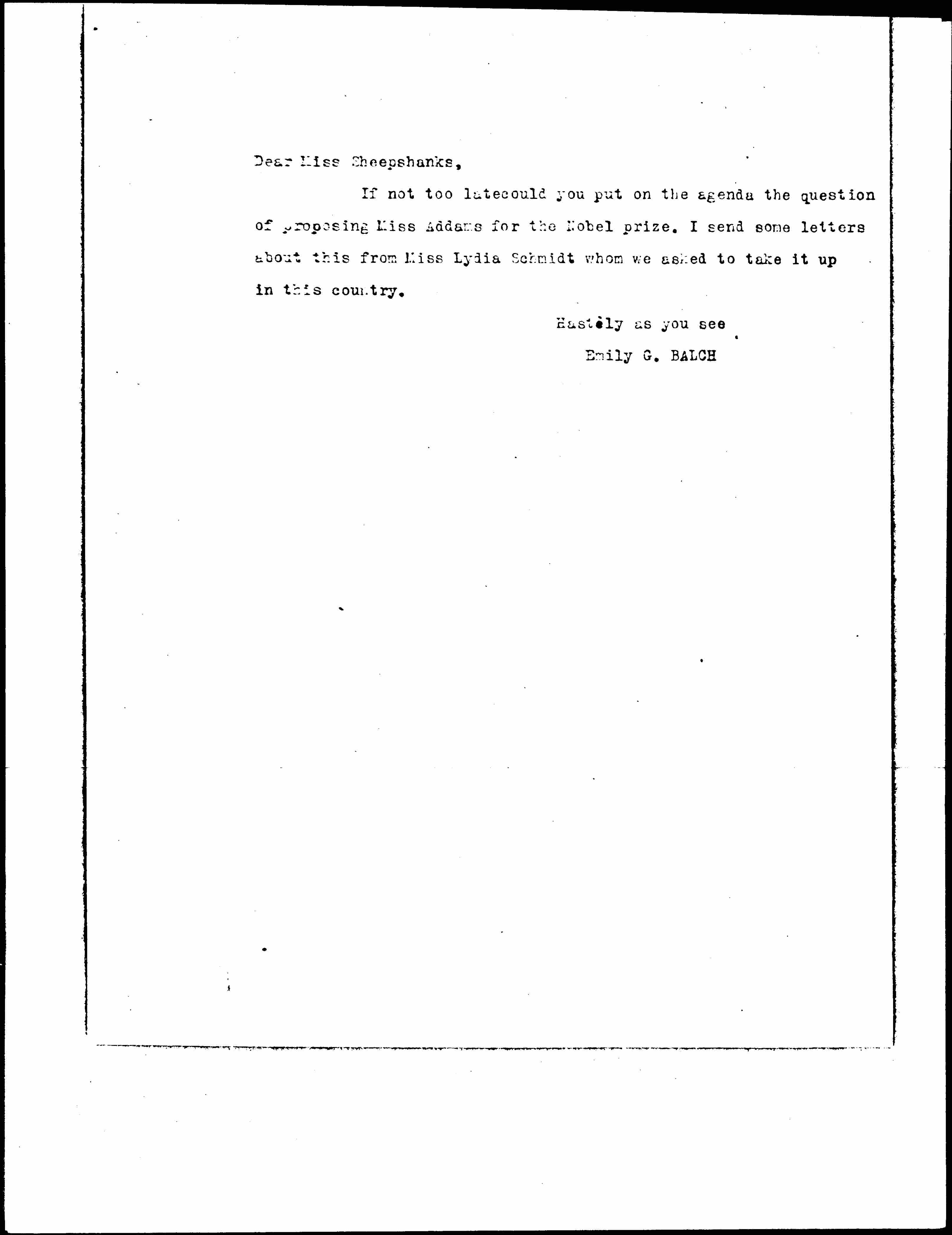 Emily Greene Balch to Mary Sheepshanks, ca. January 12, 1928
