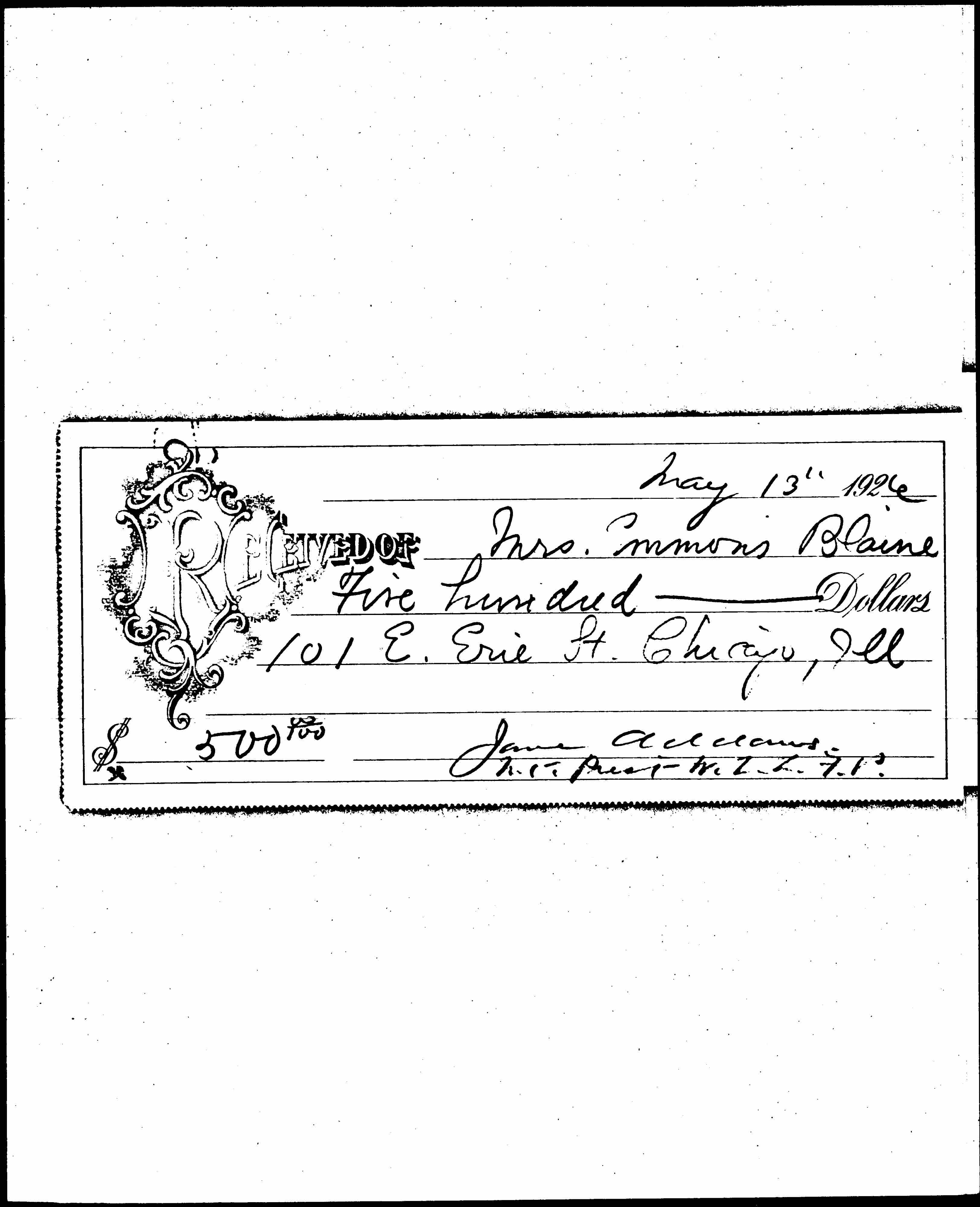 RECEIVED OF ↑Mrs. Emmons Blaine↓