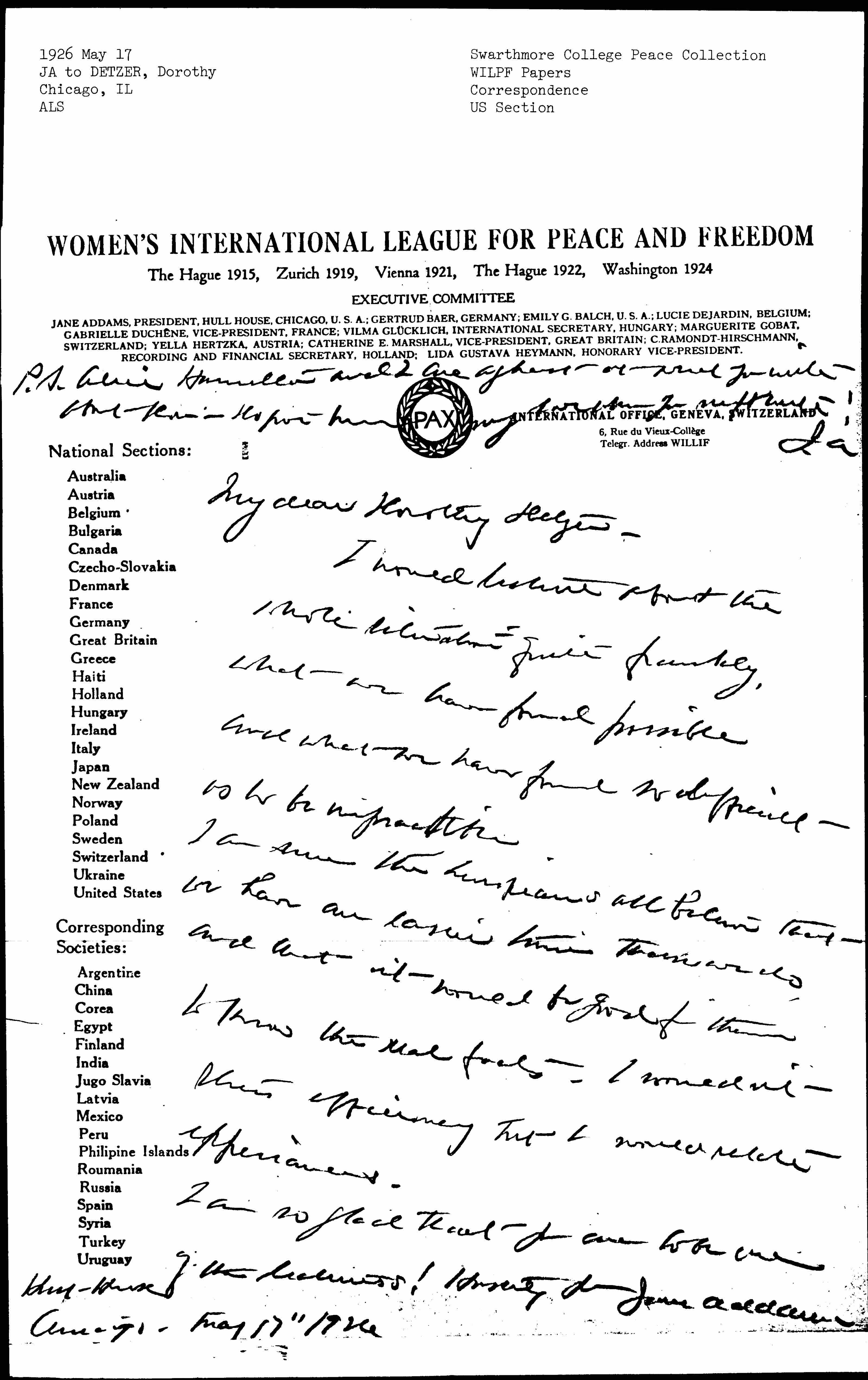 WOMEN'S INTERNATIONAL LEAGUE FOR PEACE AND FREEDOM