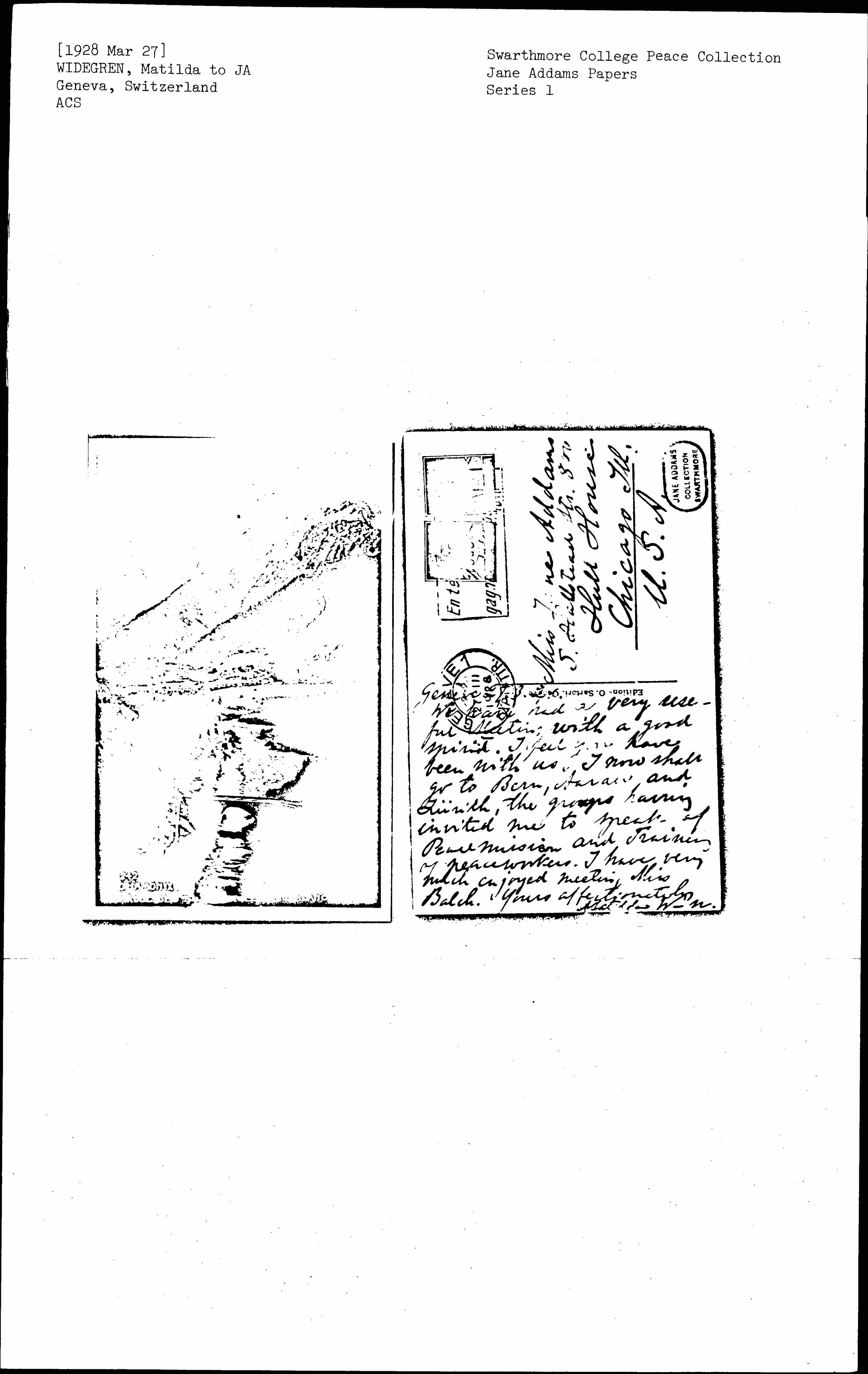 Maria Matilda Widegren to Jane Addams, March 27, 1928