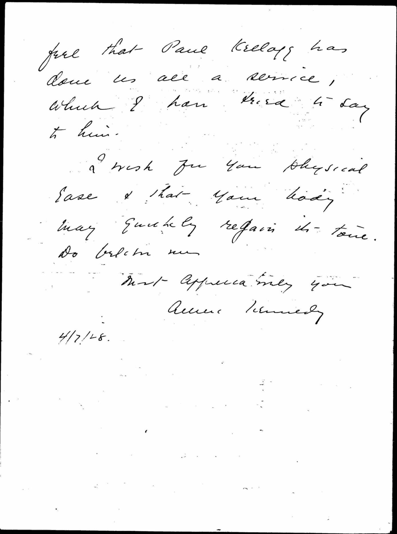 Jane Addams to Albert Joseph Kennedy, April 4, 1928