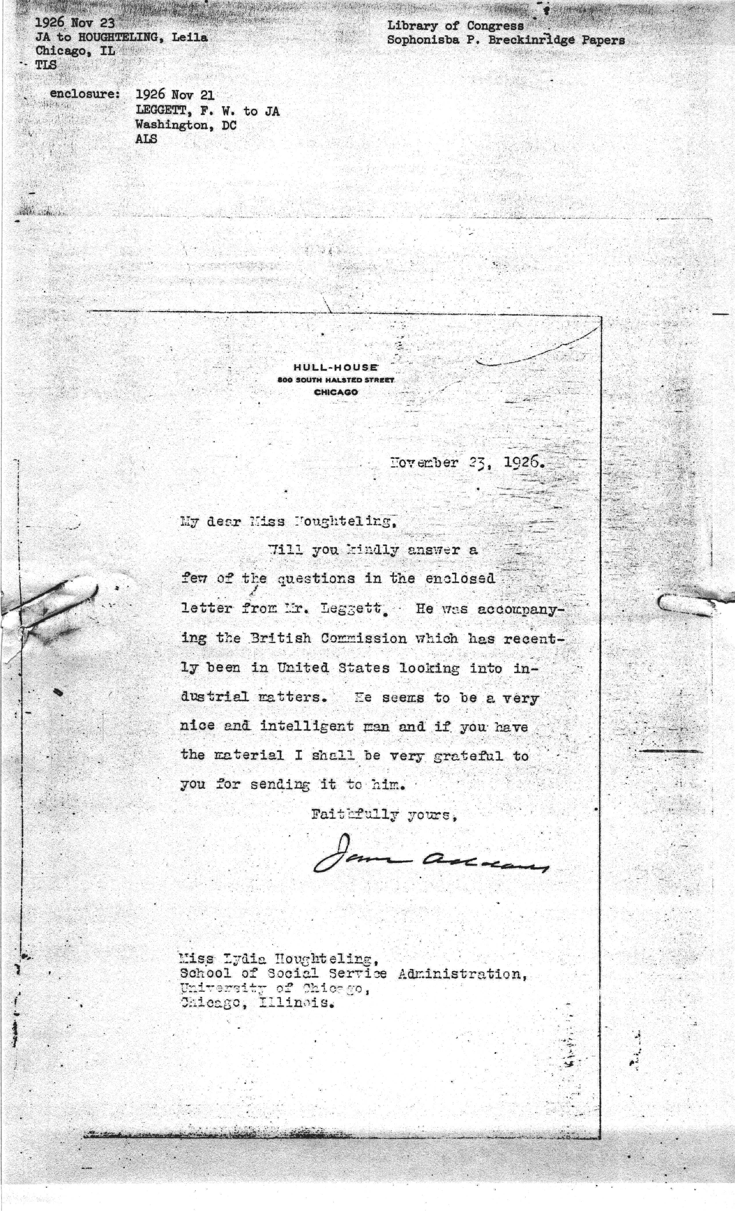 Will you kindly answer a few of the questions in the enclosed letter from Mr. Leggett. He was accompanying the British Commission which has recently been in United States looking into industrial matters. He seems to be a very nice and intelligent man and if you have the material I shall be very grateful to you for sending it to him.