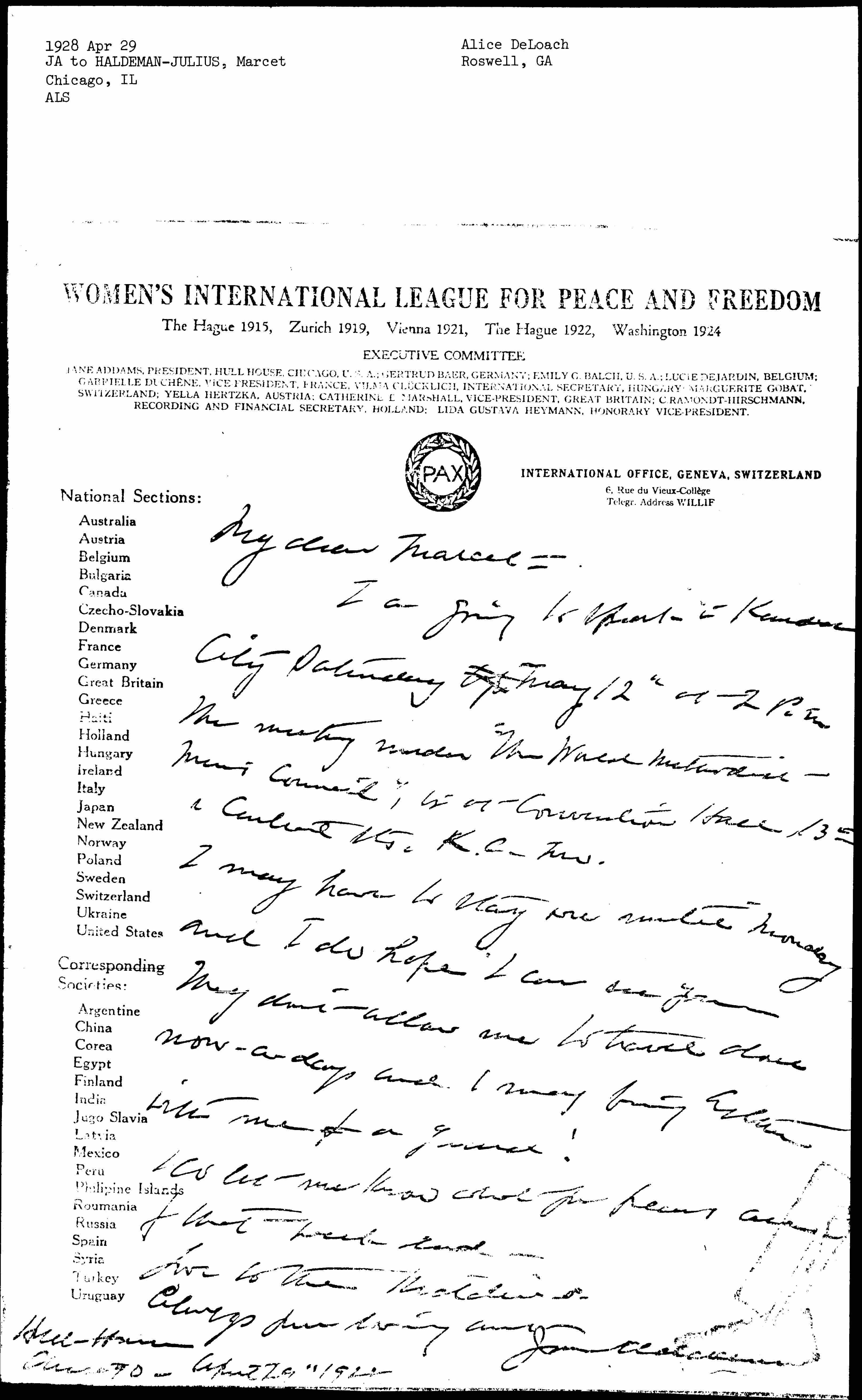 Jane Addams to Anna Marcet Haldeman-Julius, April 29, 1928