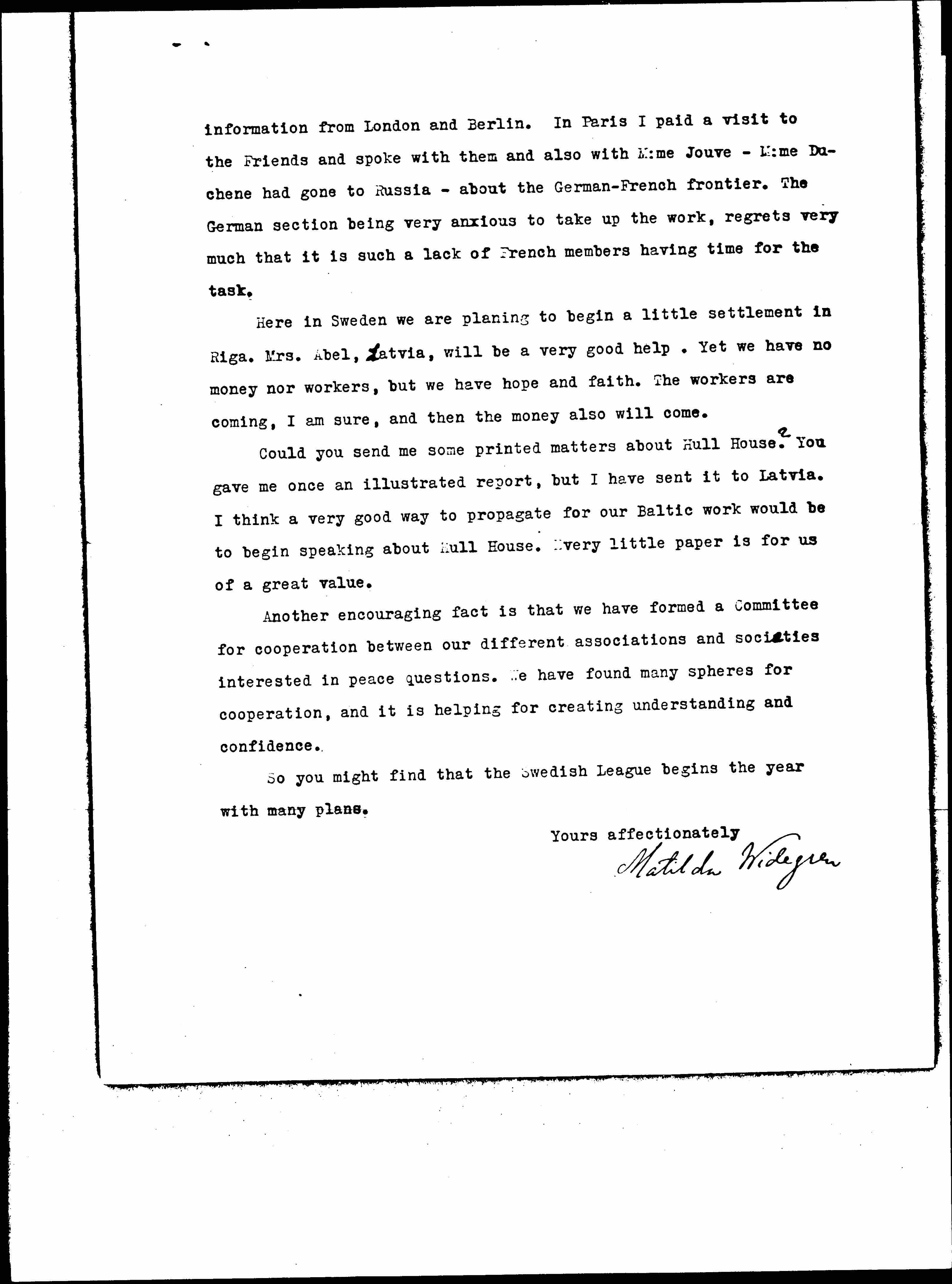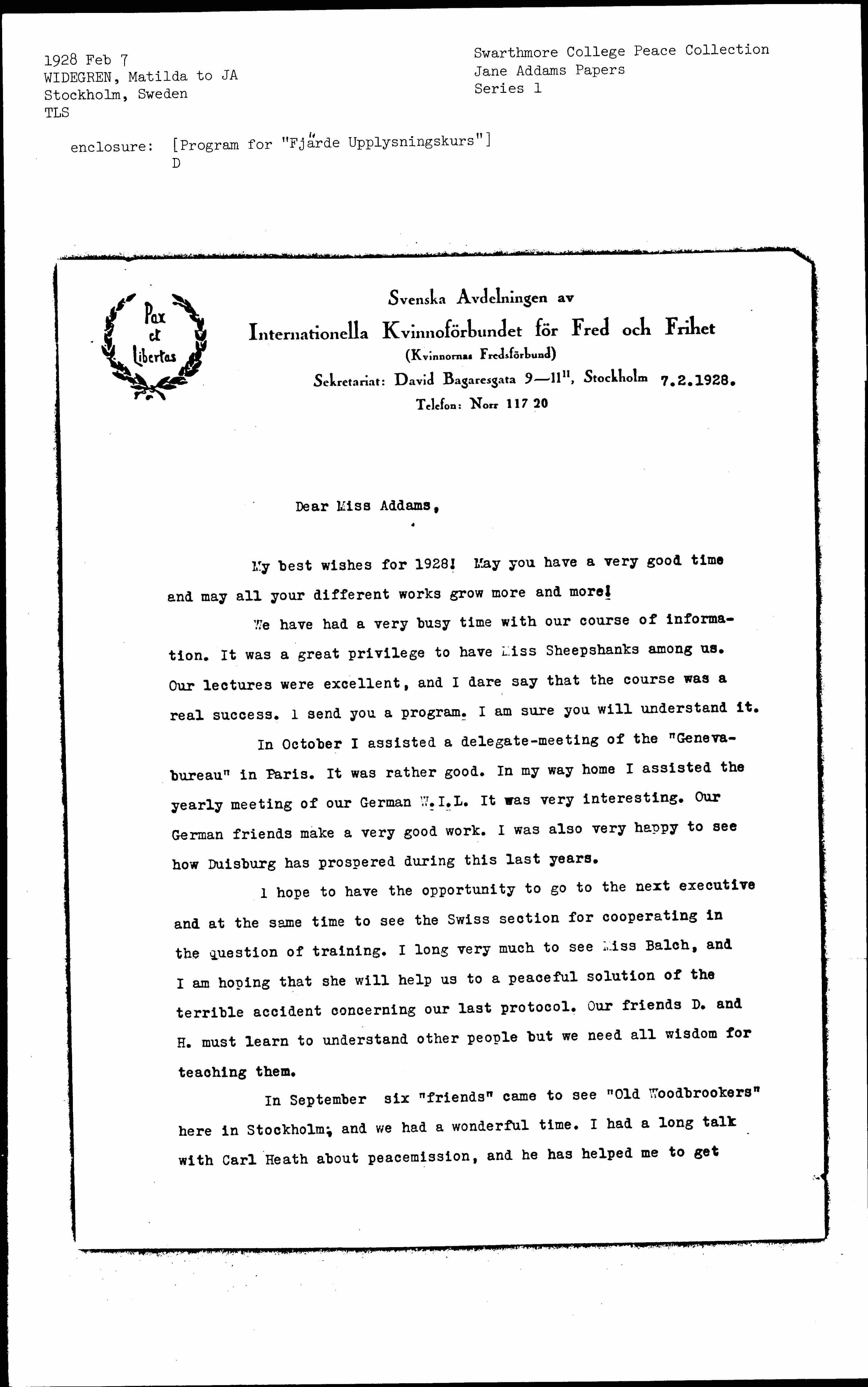 Maria Matilda Widegren to Jane Addams, February 7, 1928