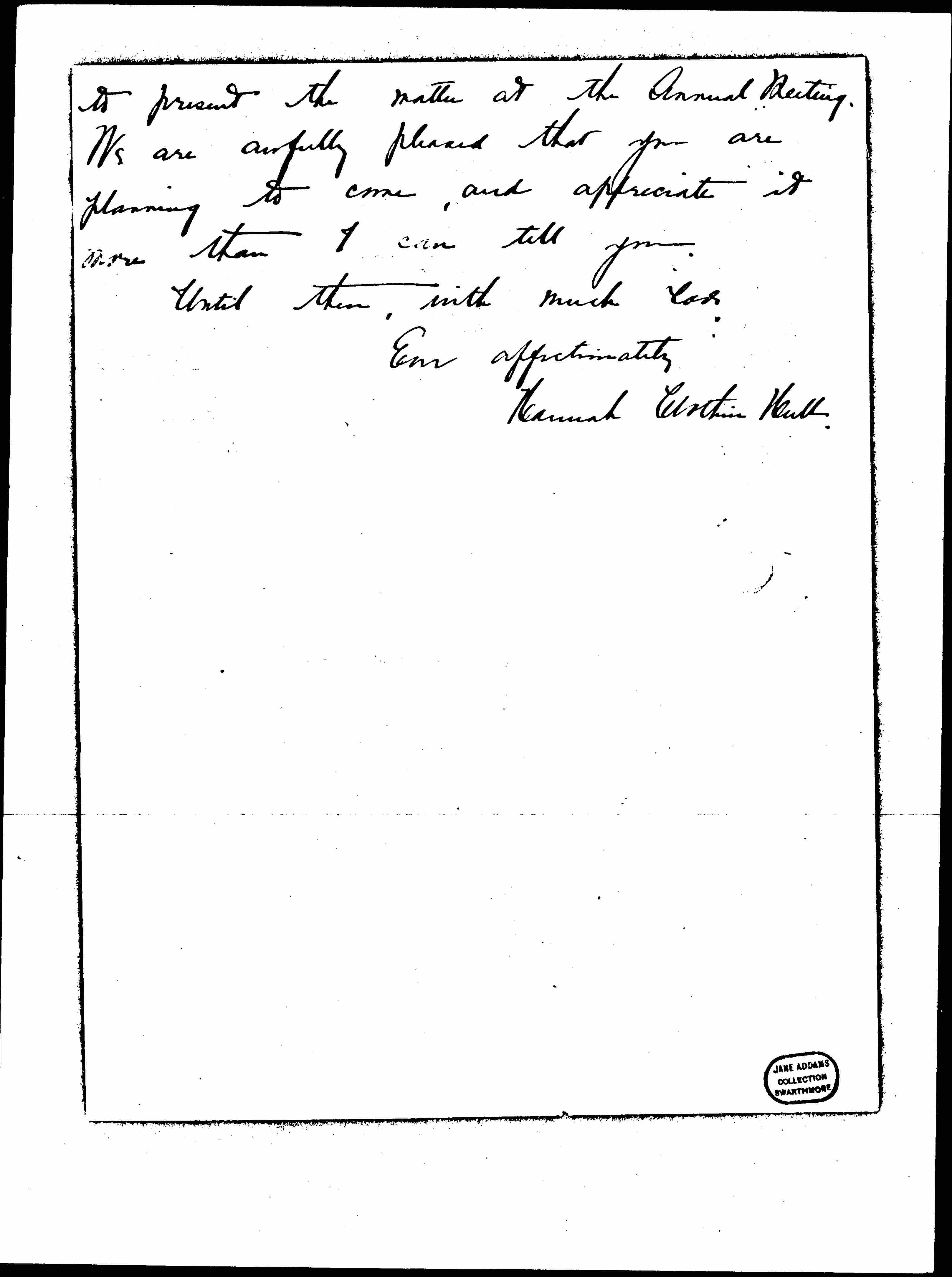 Hannah Clothier Hull to Jane Addams, April 7, 1928