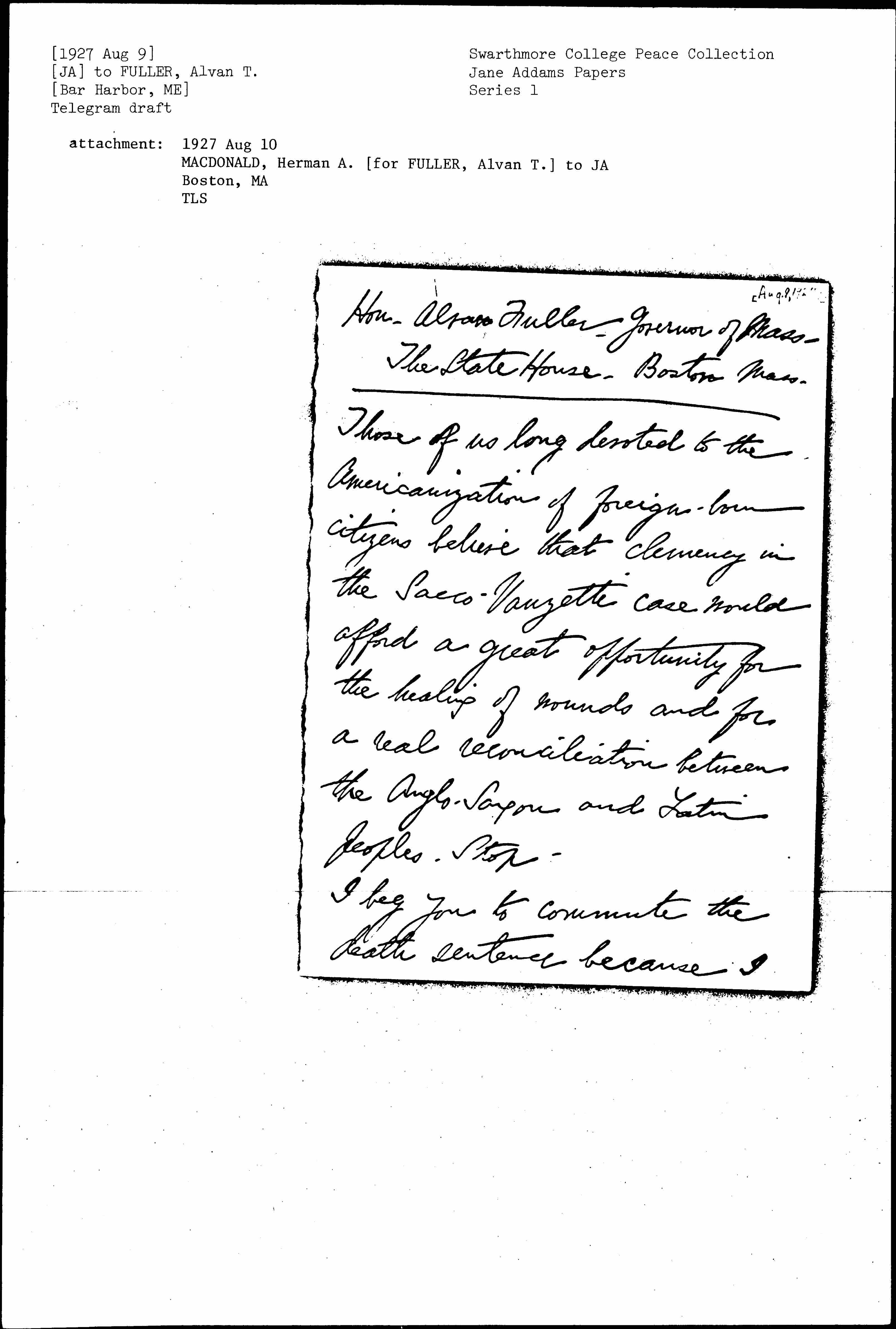 I beg you to commute the death sentence because I [page 2] realize that thousands of our ↑humble↓ fellow citizens feel as the French felt concerning Dreyfus and ↑ardently↓ long that these men should ↑also↓ have their ↑chance for↓ possible vindication later.