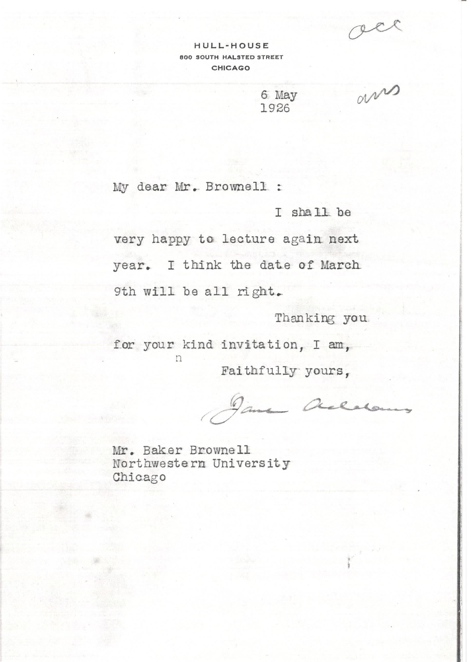 Jane Addams [signed]