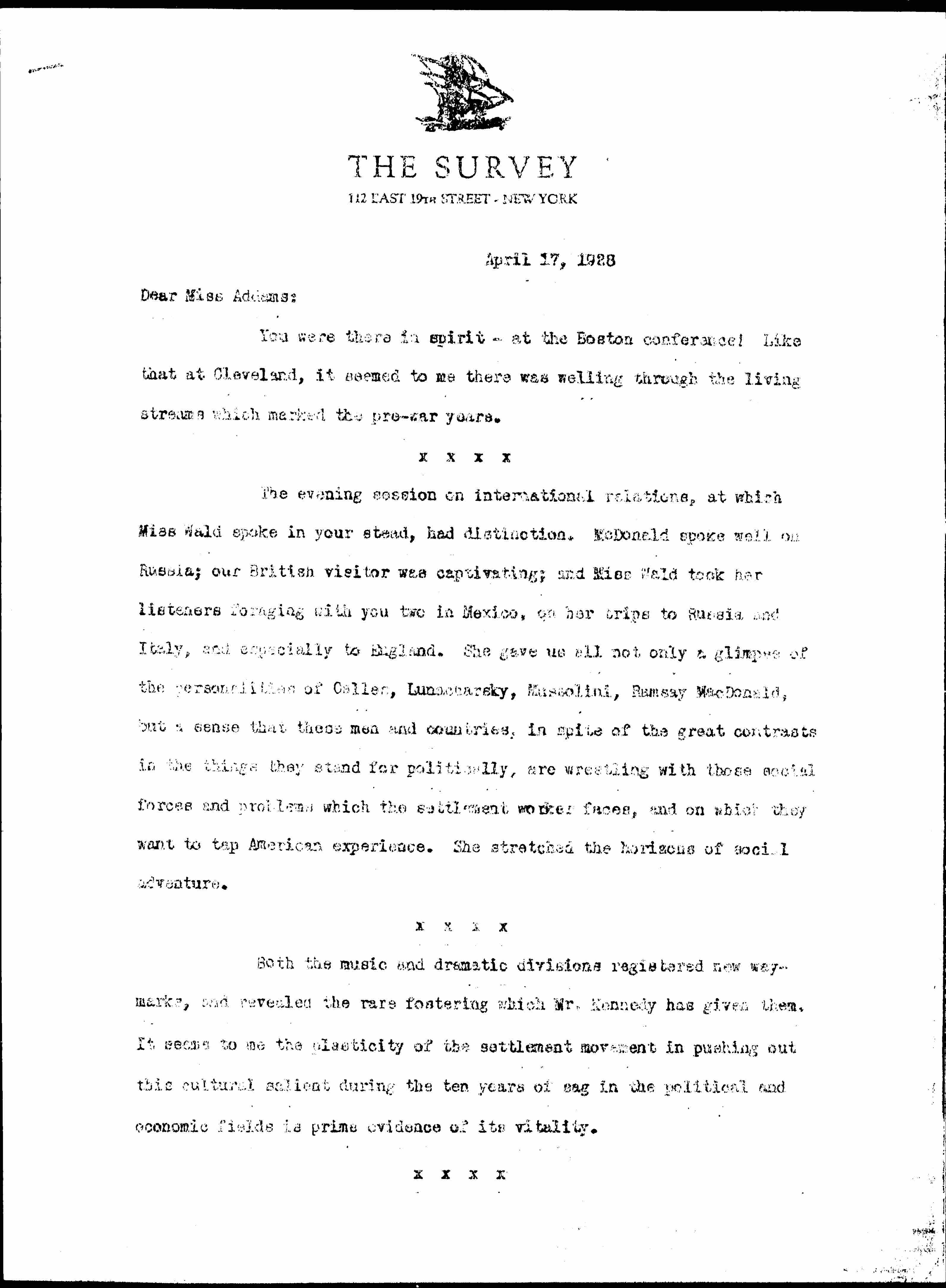Jane Addams to Paul Underwood Kellogg, April 19, 1928