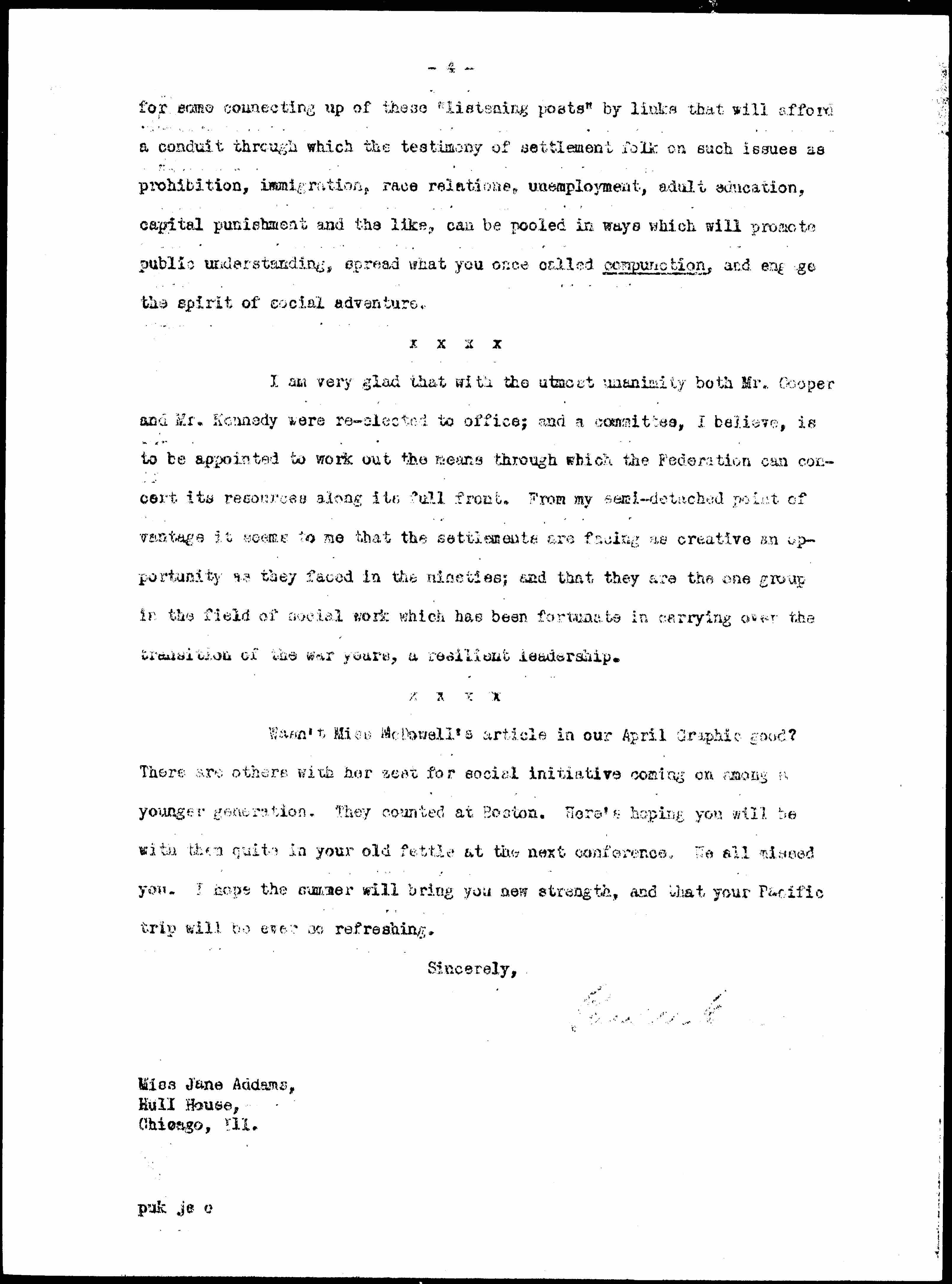 Jane Addams to Albert Joseph Kennedy, April 19, 1928