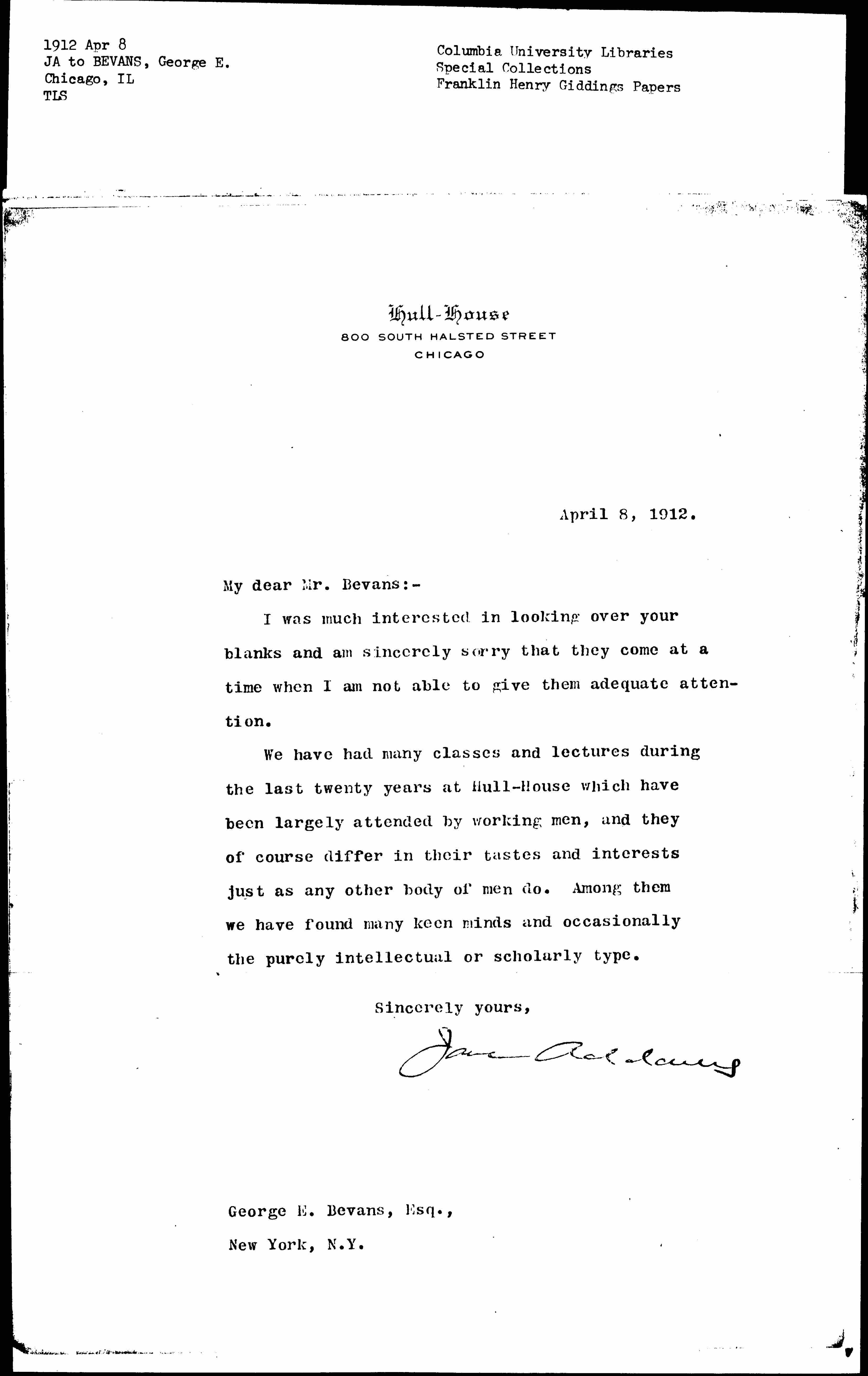 Jane Addams [signed]