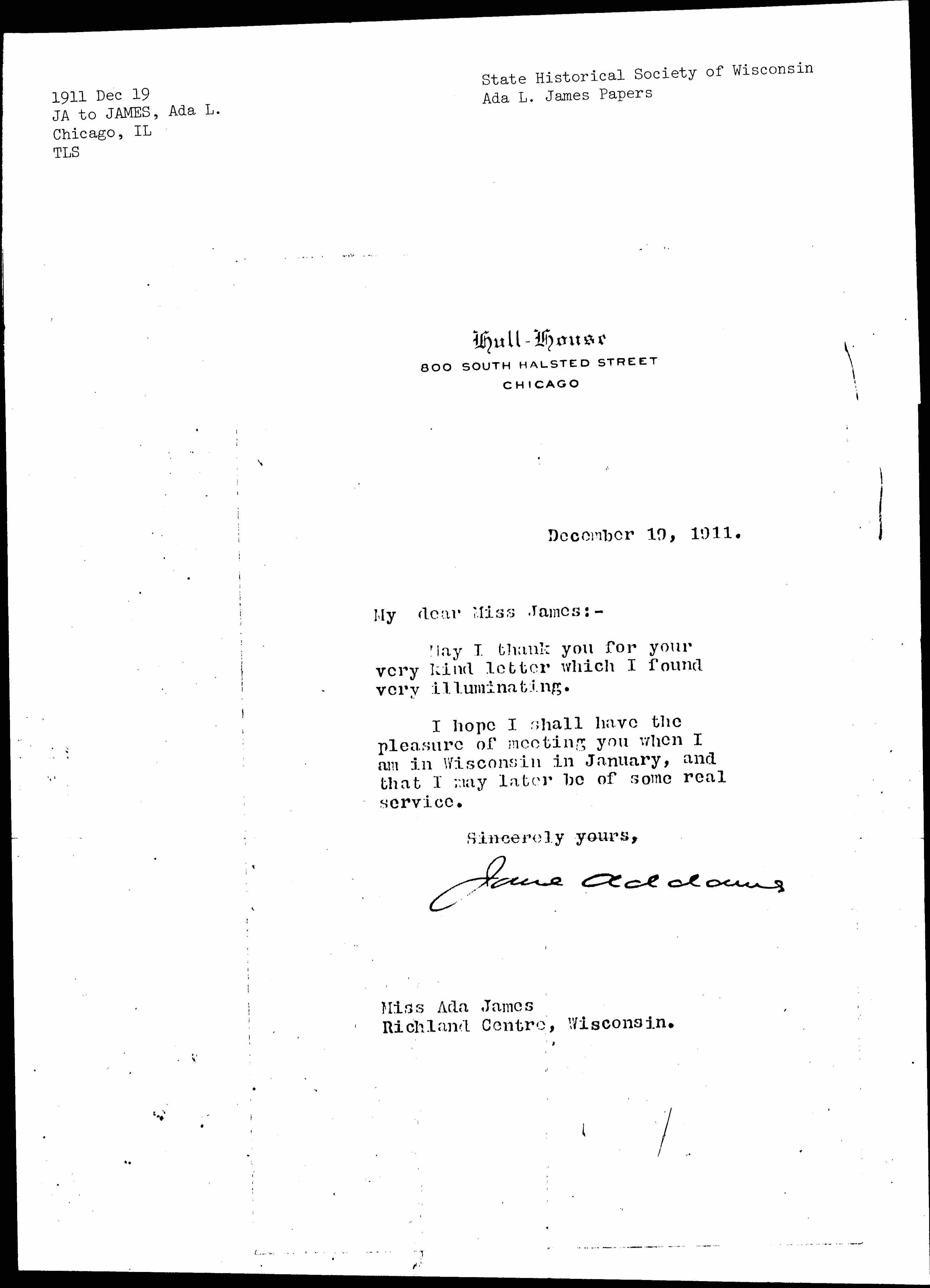 Jane Addams [signed]