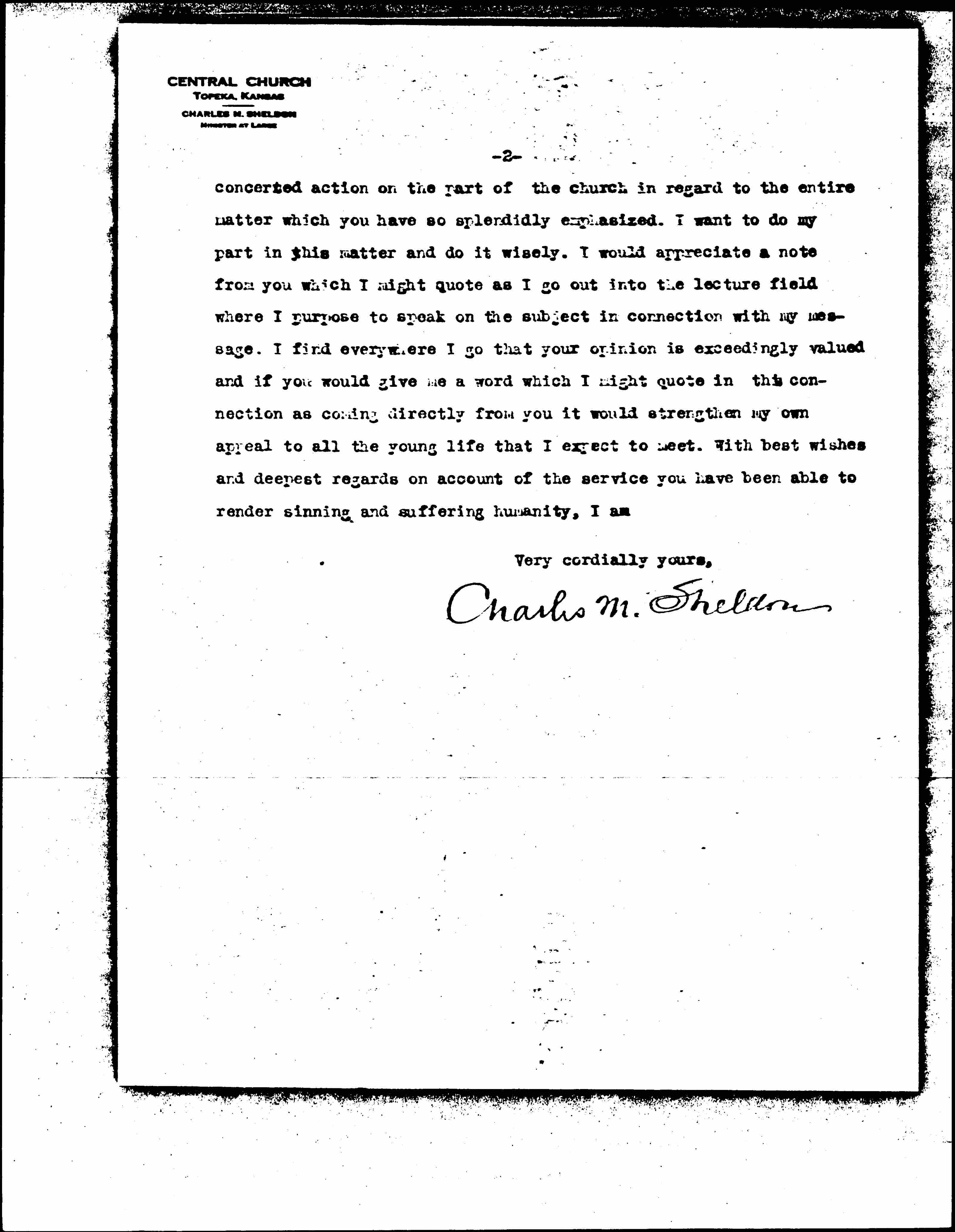 Charles M. Sheldon [signed]