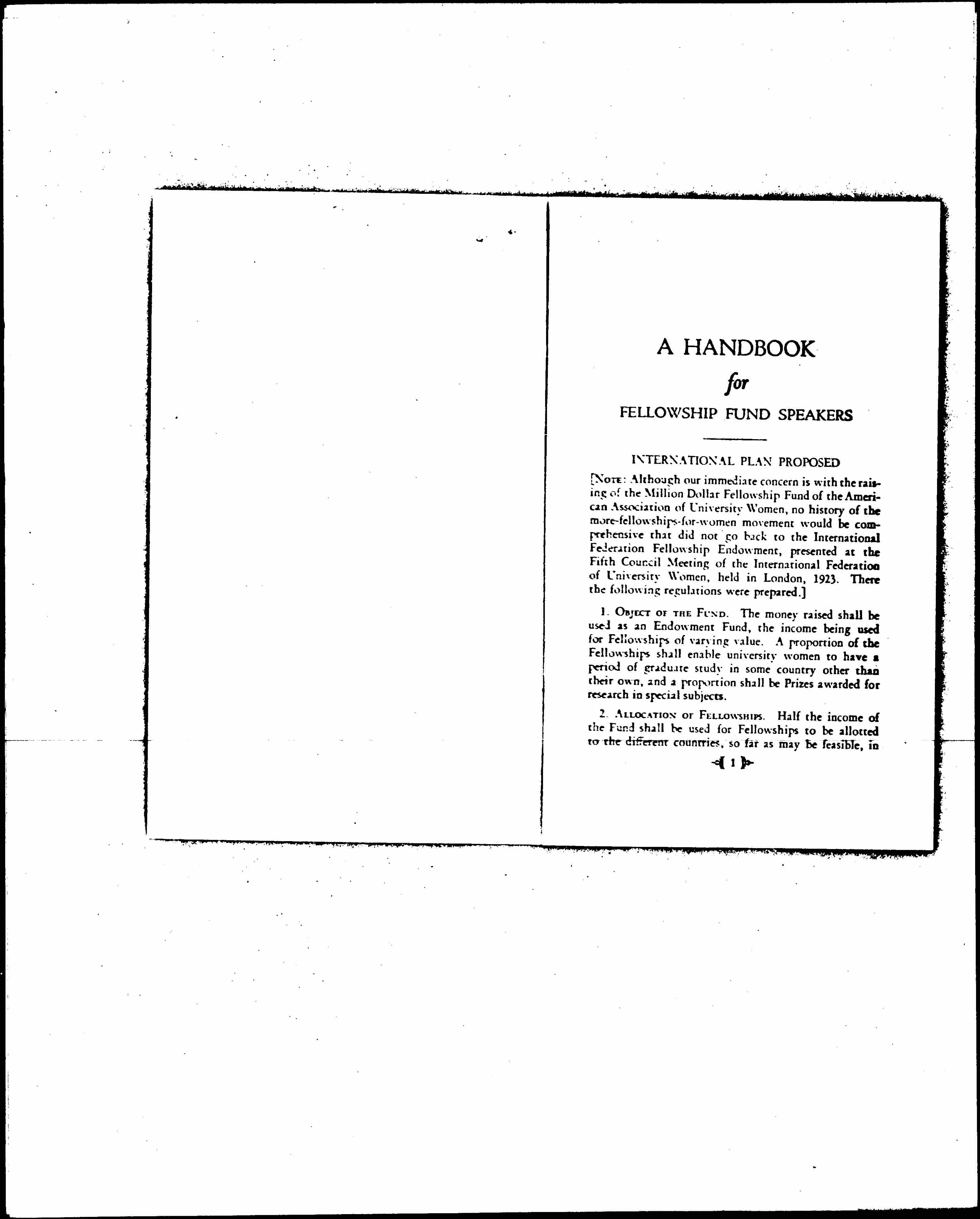 A Handbook for Fellowship Fund Speakers, 1928