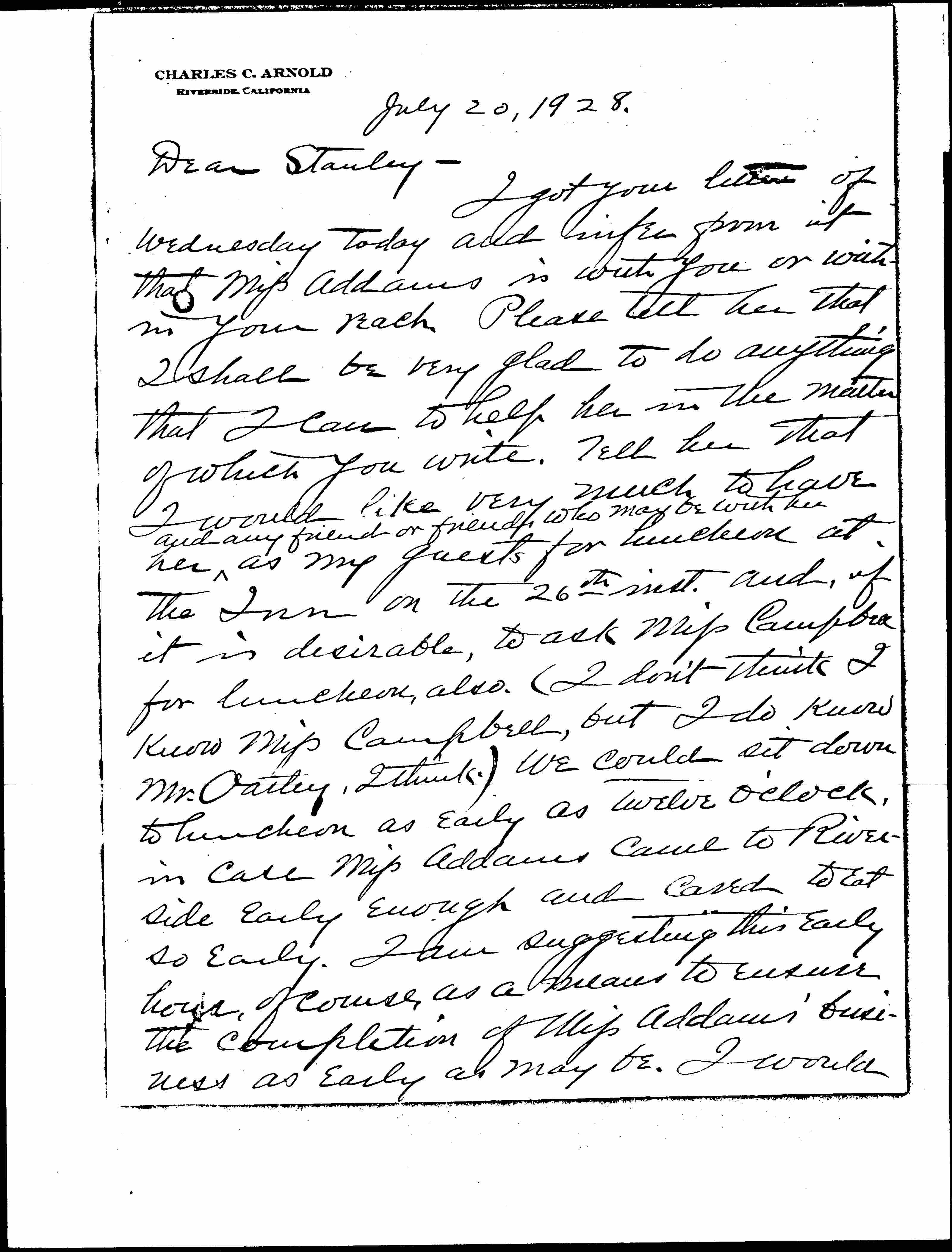 Charles Columbus Arnold to Stanley Ross Linn, July 20, 1928