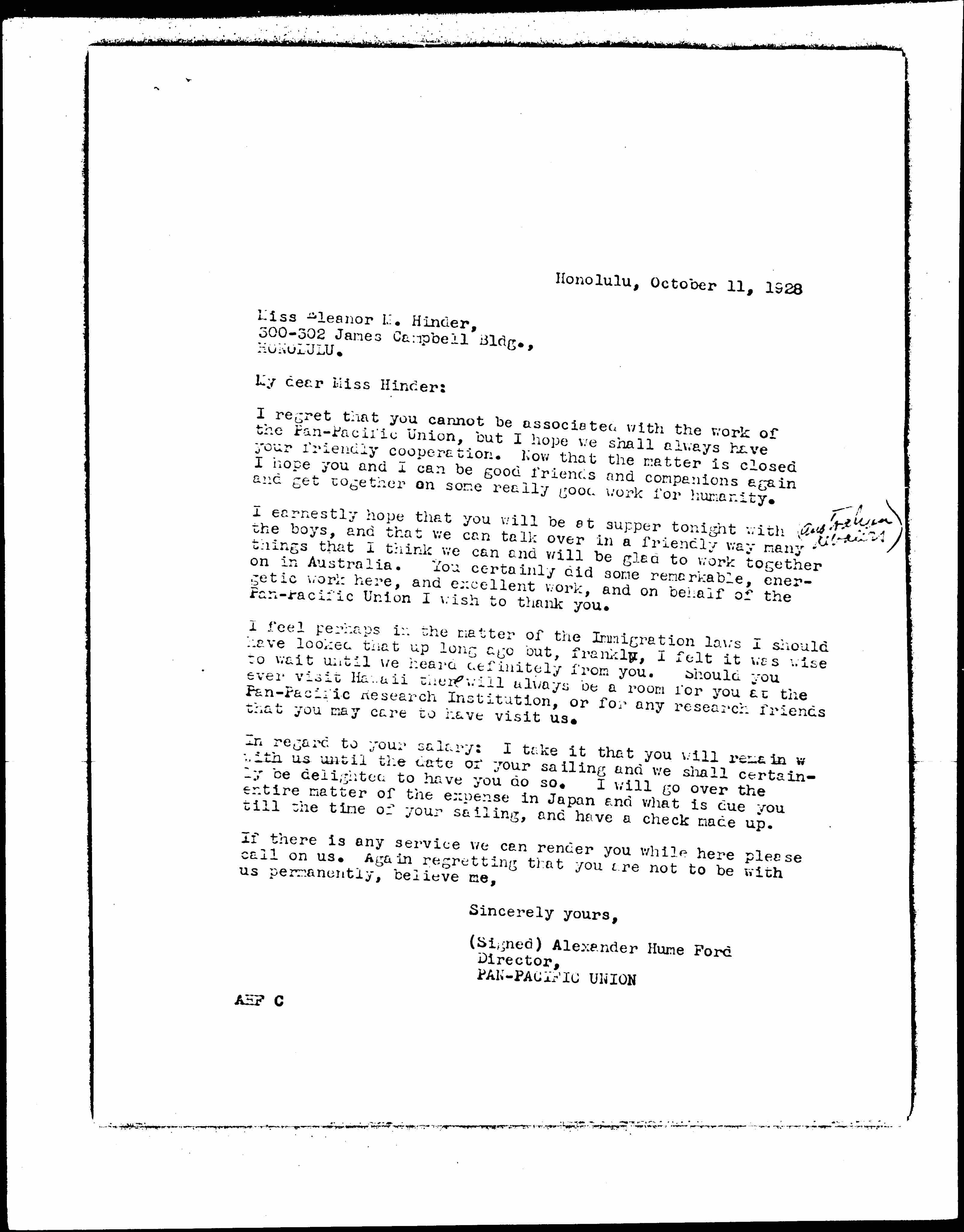Eleanor Mary Hinder to Alexander Hume Ford, October 11, 1928