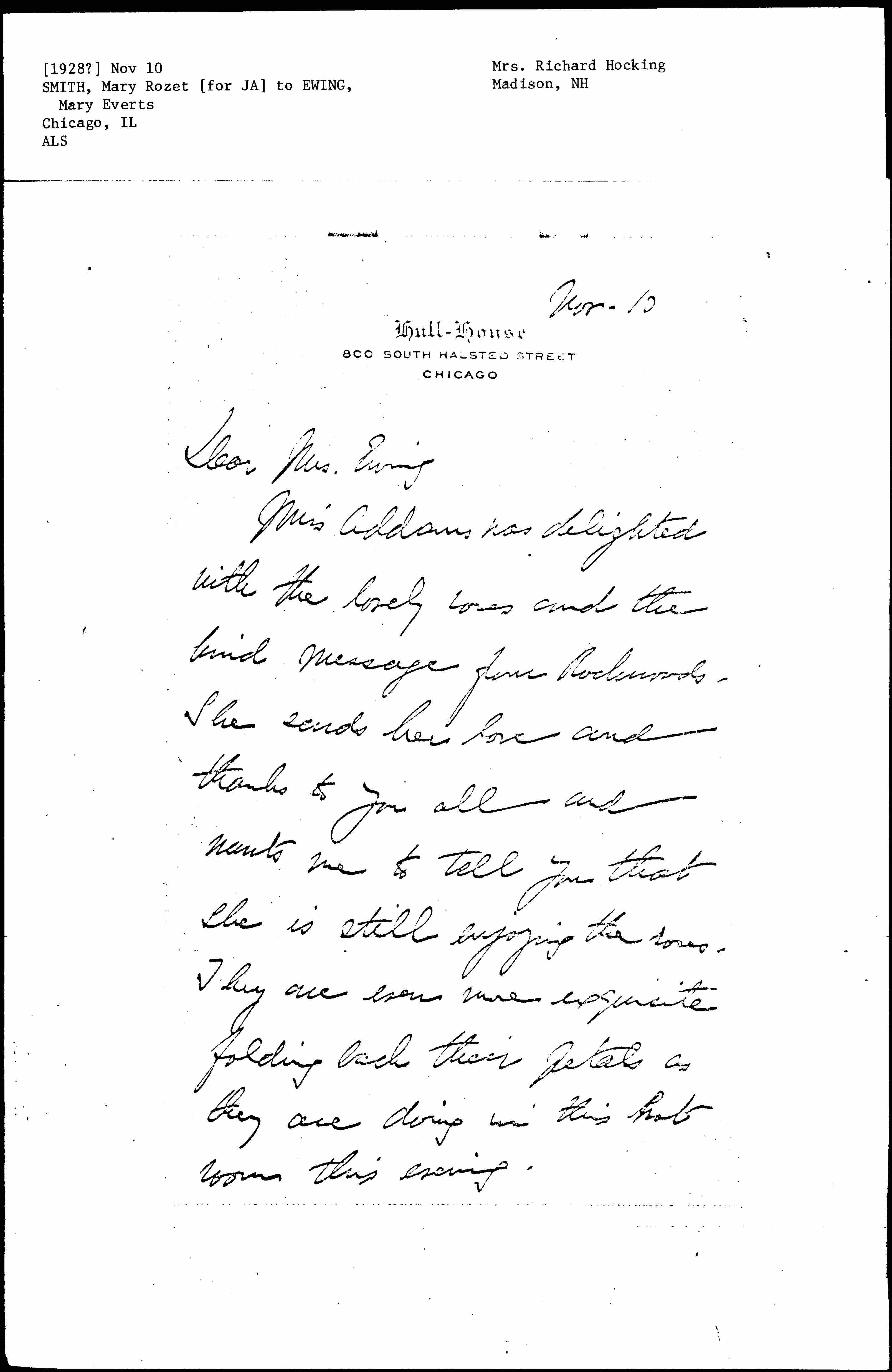 Mary Rozet Smith to Mary Everts Ewing, November 10, 1925